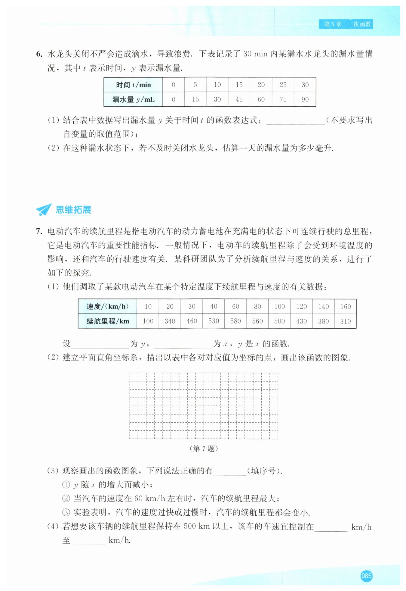 $解:(2)一天的漏水量約為y=3×(24×60)=4320(mL)$