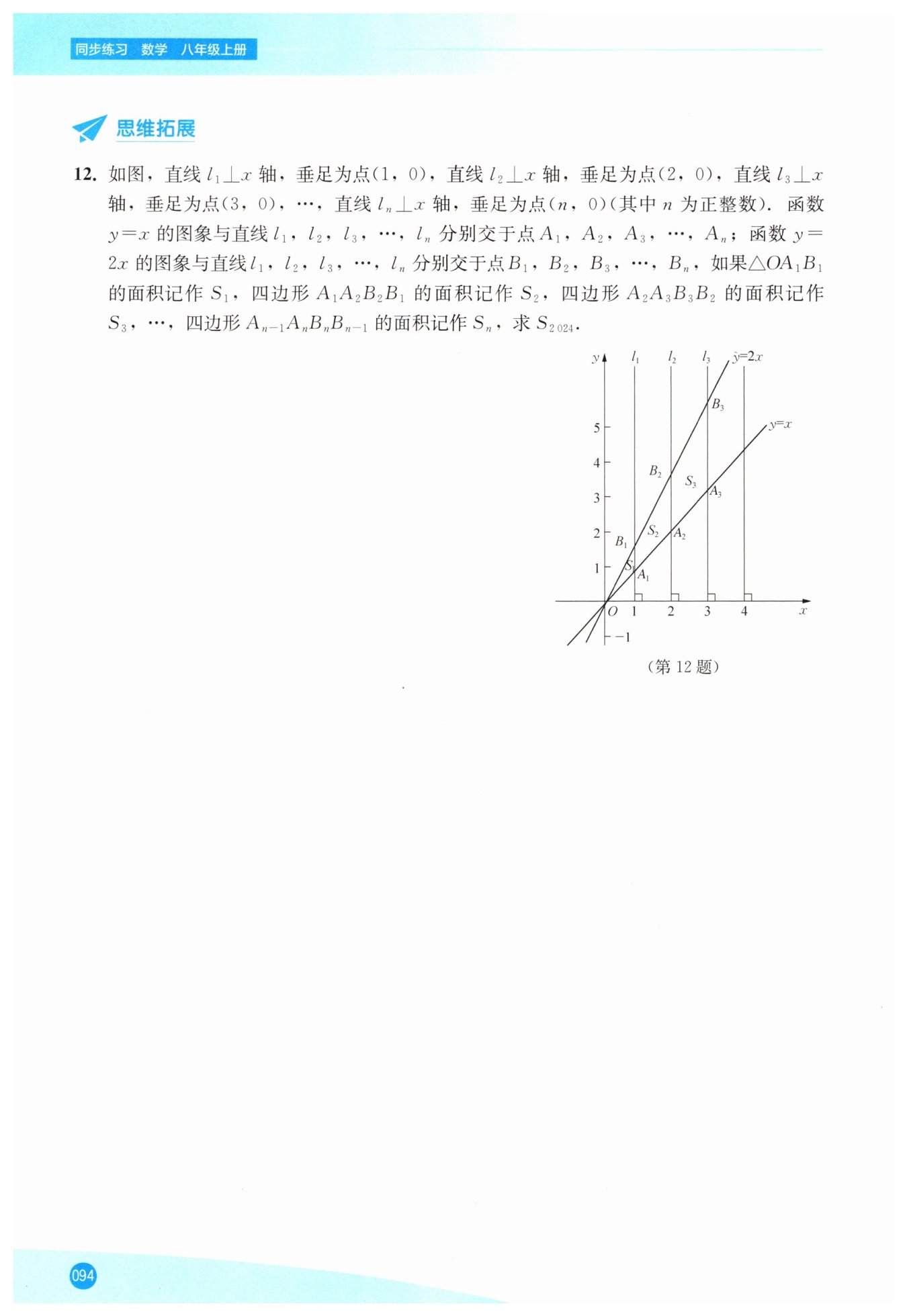函數(shù)$y=x$與$l_n$交于點$A_n,$則$A_n$的坐標為$(n,n),$故$A_nB_n$的長度為$2n - n = n$(因為$B_n$是$y=2x$與$l_n$的交點,坐標為$(n,2n)$)。
