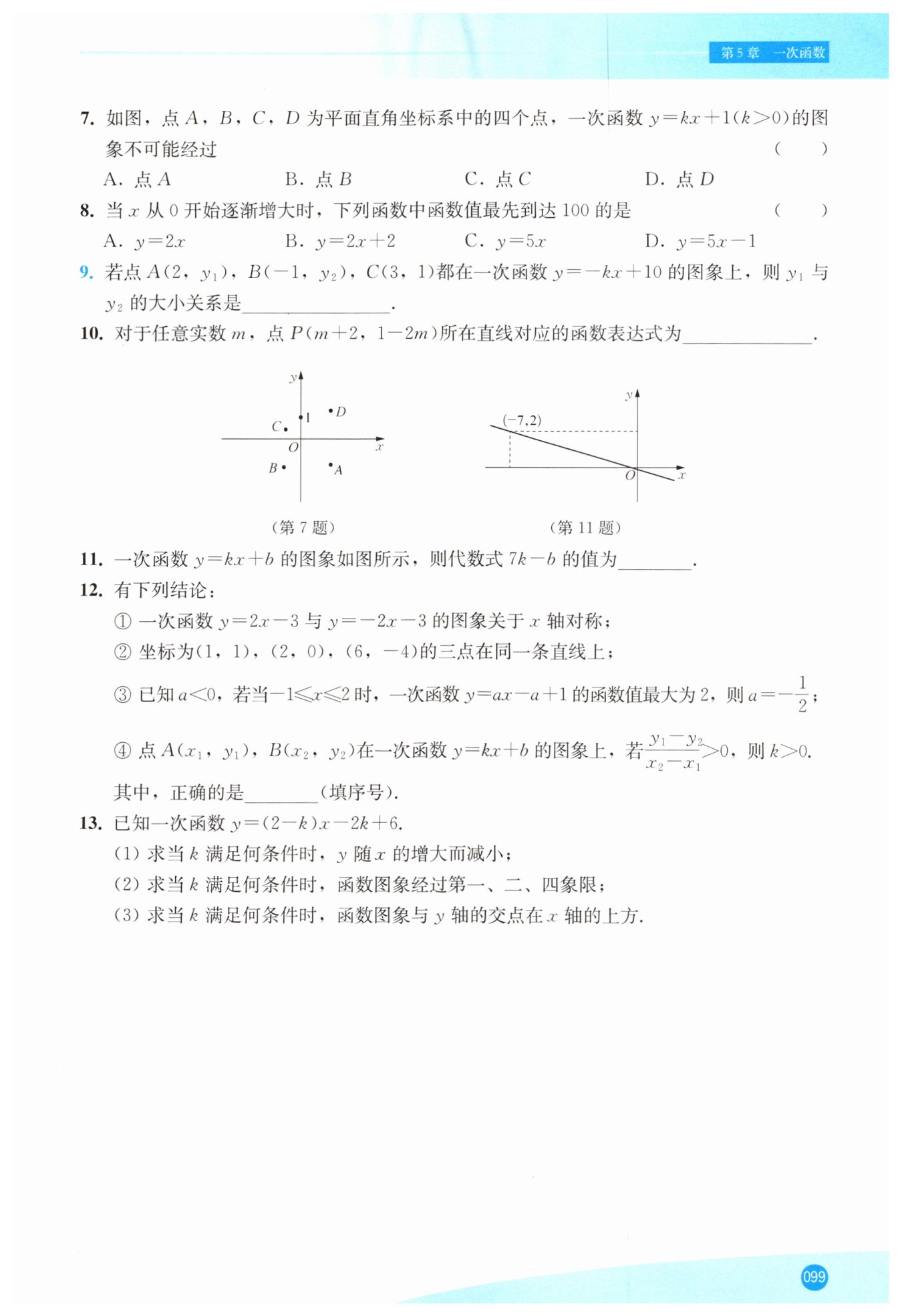 ④$\frac{y_1-y_2}{x_2-x_1}=\frac{(kx_1+b)-(kx_2+b)}{x_2-x_1}=\frac{k(x_1-x_2)}{x_2-x_1}=-k\gt0$,則$k\lt0$,④錯(cuò)誤。