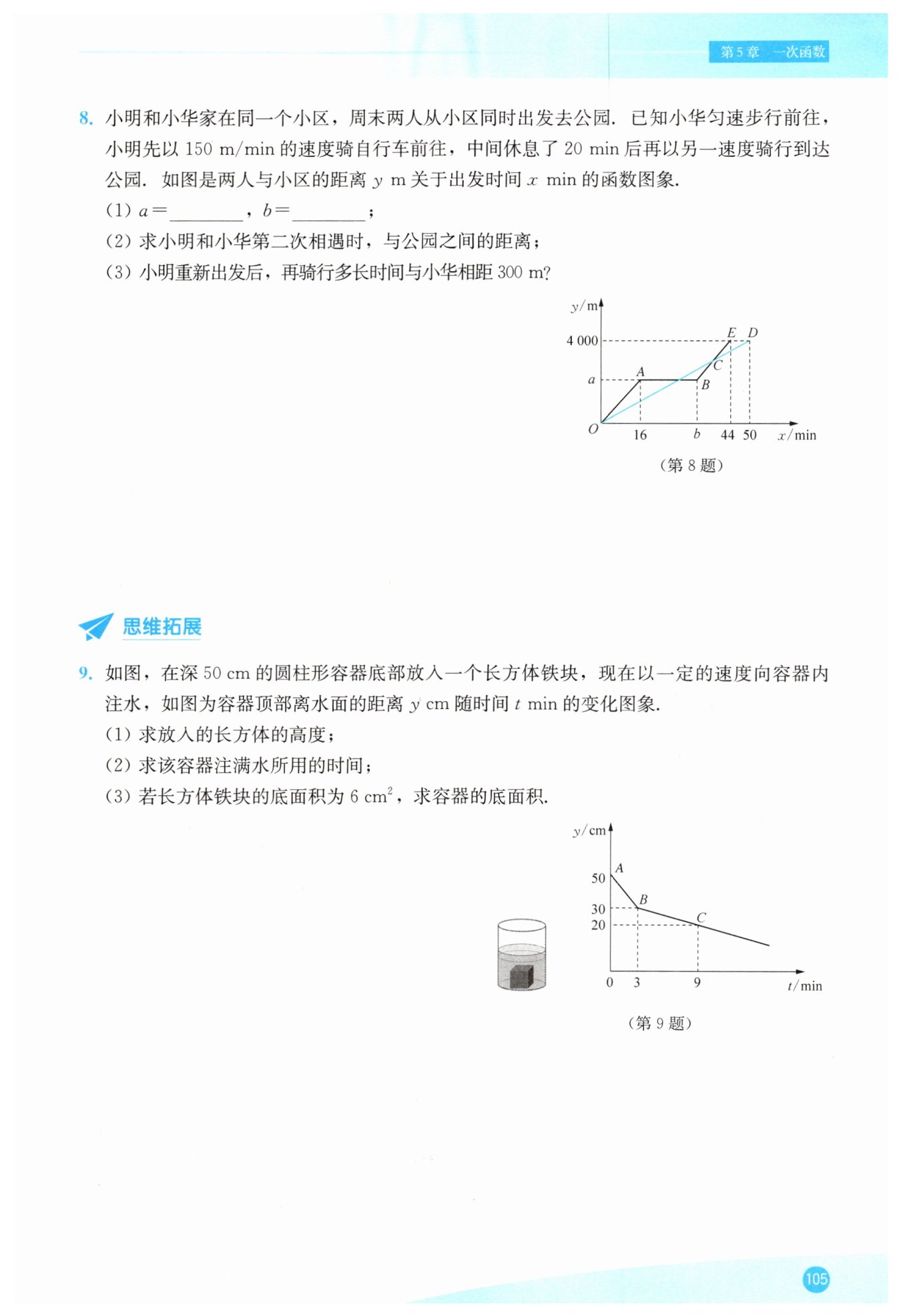 $小明的函數(shù)y_{明}=200(t + 36)-4800=200t+2400,$