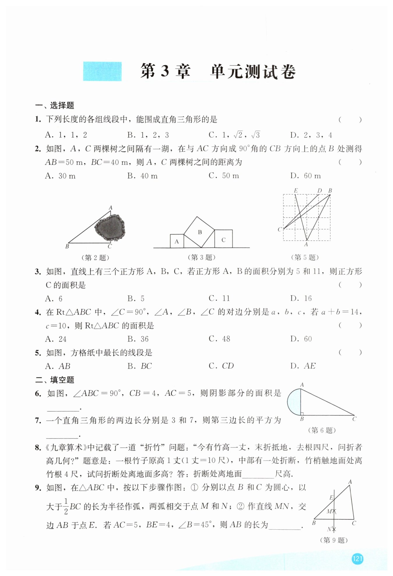 B. $1^2 + 2^2 = 5$, $3^2 = 9$, $5 \neq 9$, 不能圍成直角三角形;