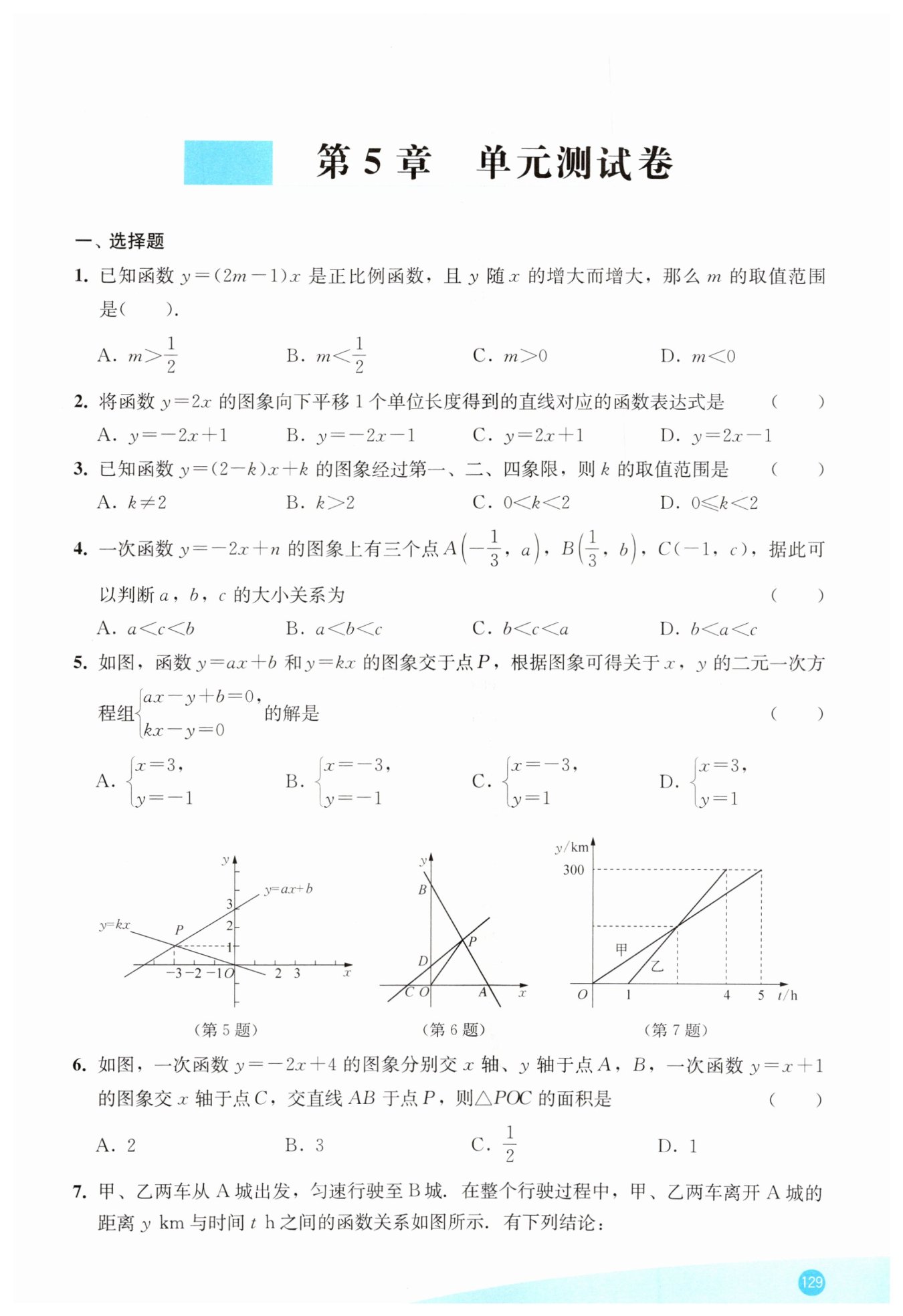 ③設(shè)甲車函數(shù)$y_{甲}=kt$,將$(5,300)$代入得$k=60$,$y_{甲}=60t$;乙車函數(shù)$y_{乙}=mt+n$,將$(1,0)$,$(4,300)$代入得$\left\{\begin{array}{l}m+n=0\\4m+n=300\end{array}\right.$,解得$\left\{\begin{array}{l}m=100\\n=-100\end{array}\right.$,$y_{乙}=100t - 100$。令$60t=100t - 100$,解得$t=2.5$,乙車出發(fā)時間為$2.5 - 1=1.5h$,錯誤;