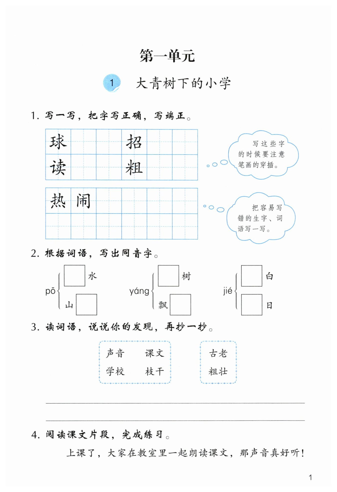寫事物或人物的詞語。 聲音 課文 學校 枝干 古老 粗壯