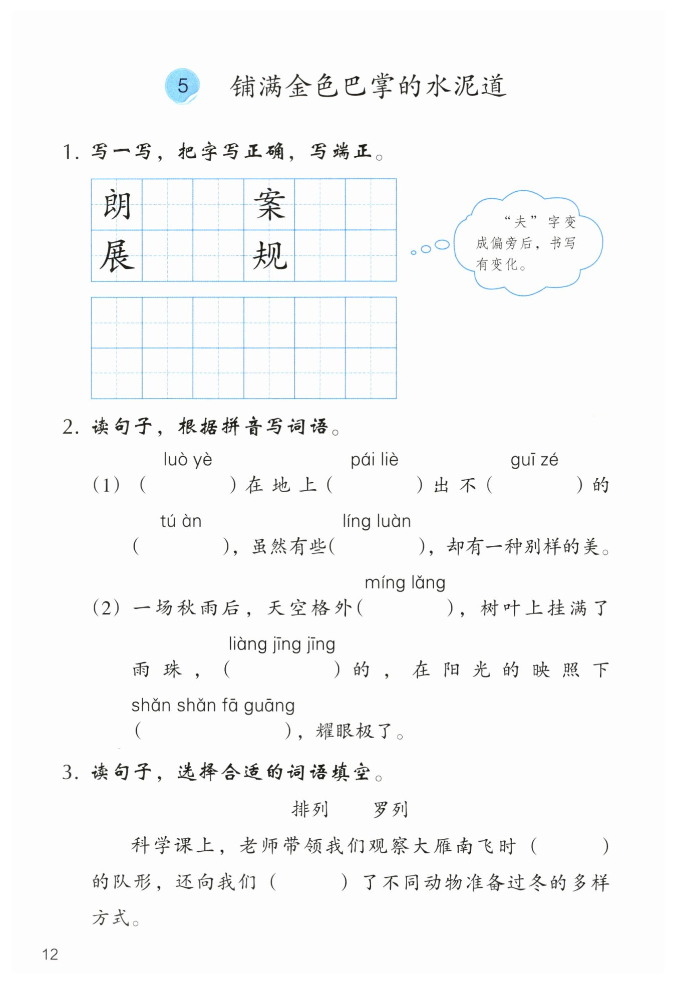 第一個空,描述的是大雁南飛時的隊形,這里應該用“排列”,因為大雁飛行時是有一定次序的。