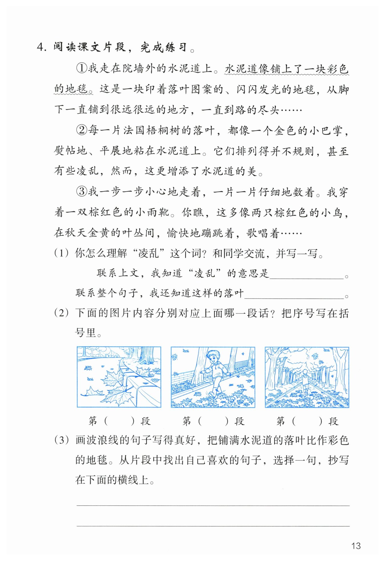 (3) 每一片法國(guó)梧桐樹(shù)的落葉,都像一個(gè)金色的小巴掌,熨帖地、平展地粘在水泥道上。