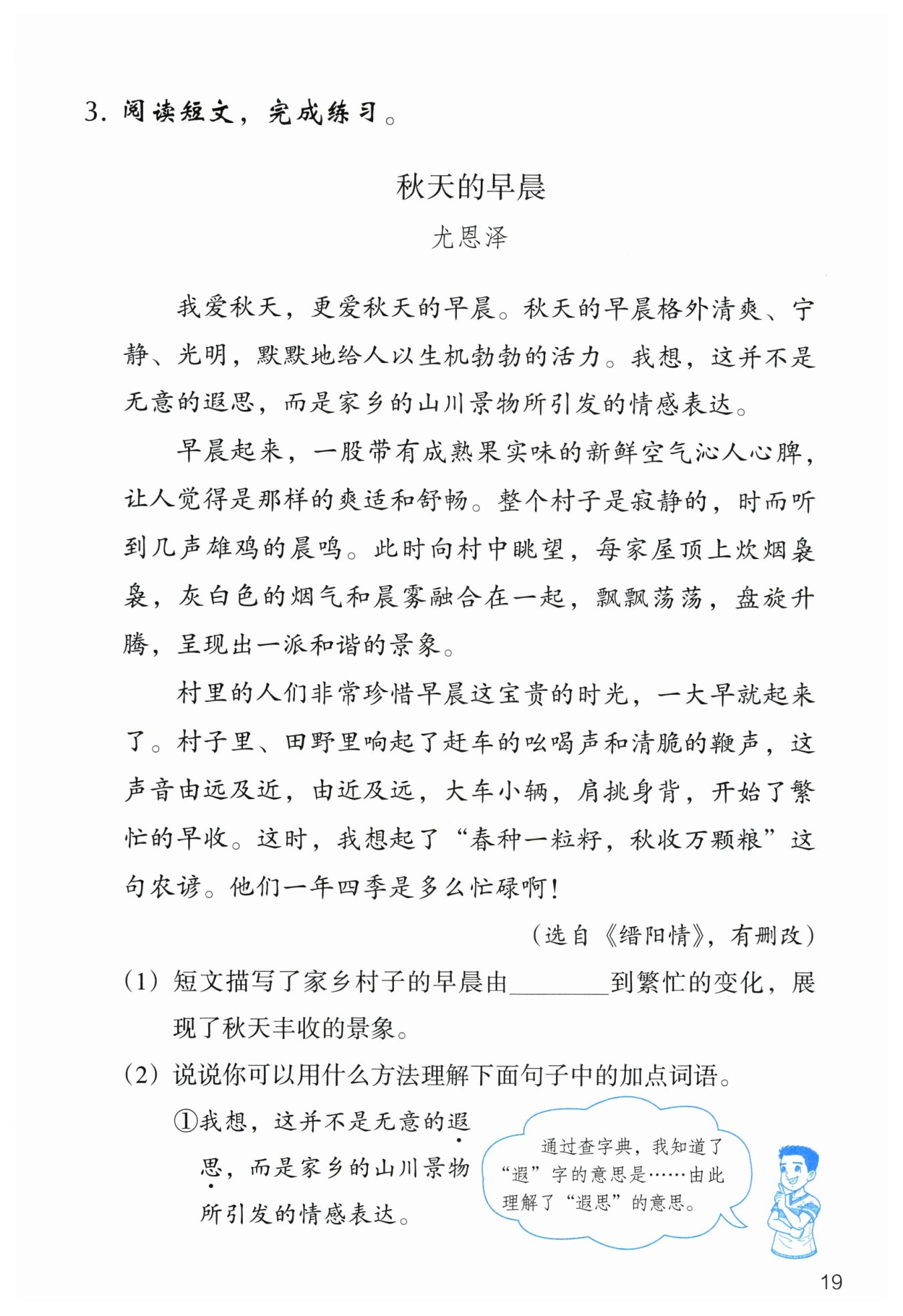 (3)春天種下一粒種子,秋天可以收獲很多糧食。文中指村里人們一年四季忙碌,春天播種,秋天收獲很多。