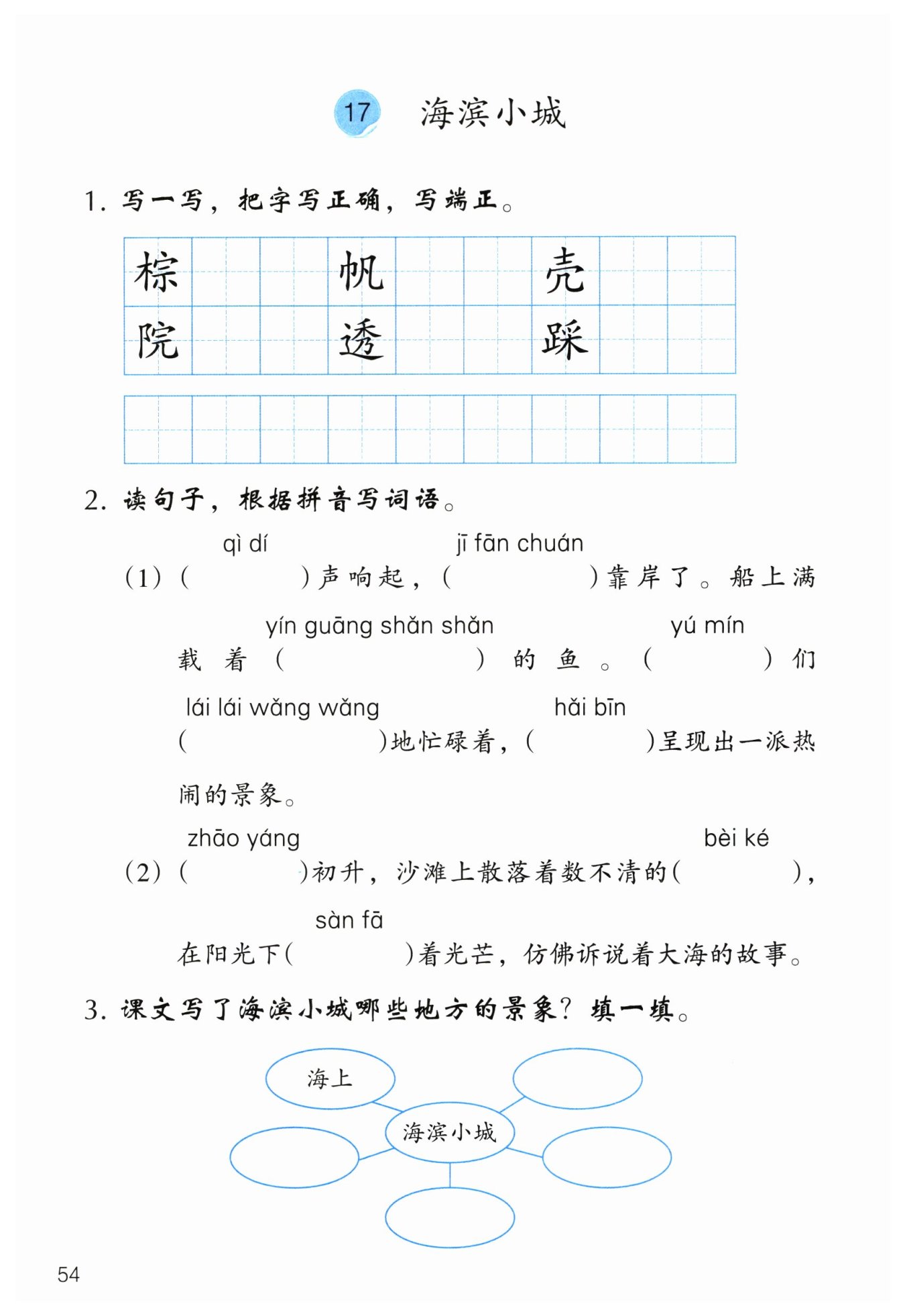 【解析】:本題考查對(duì)課文內(nèi)容的理解和概括能力,需要學(xué)生回憶課文中海濱小城不同地方的景象,準(zhǔn)確填寫相應(yīng)內(nèi)容,這要求學(xué)生對(duì)課文有較好的熟悉程度和提取信息的能力。
