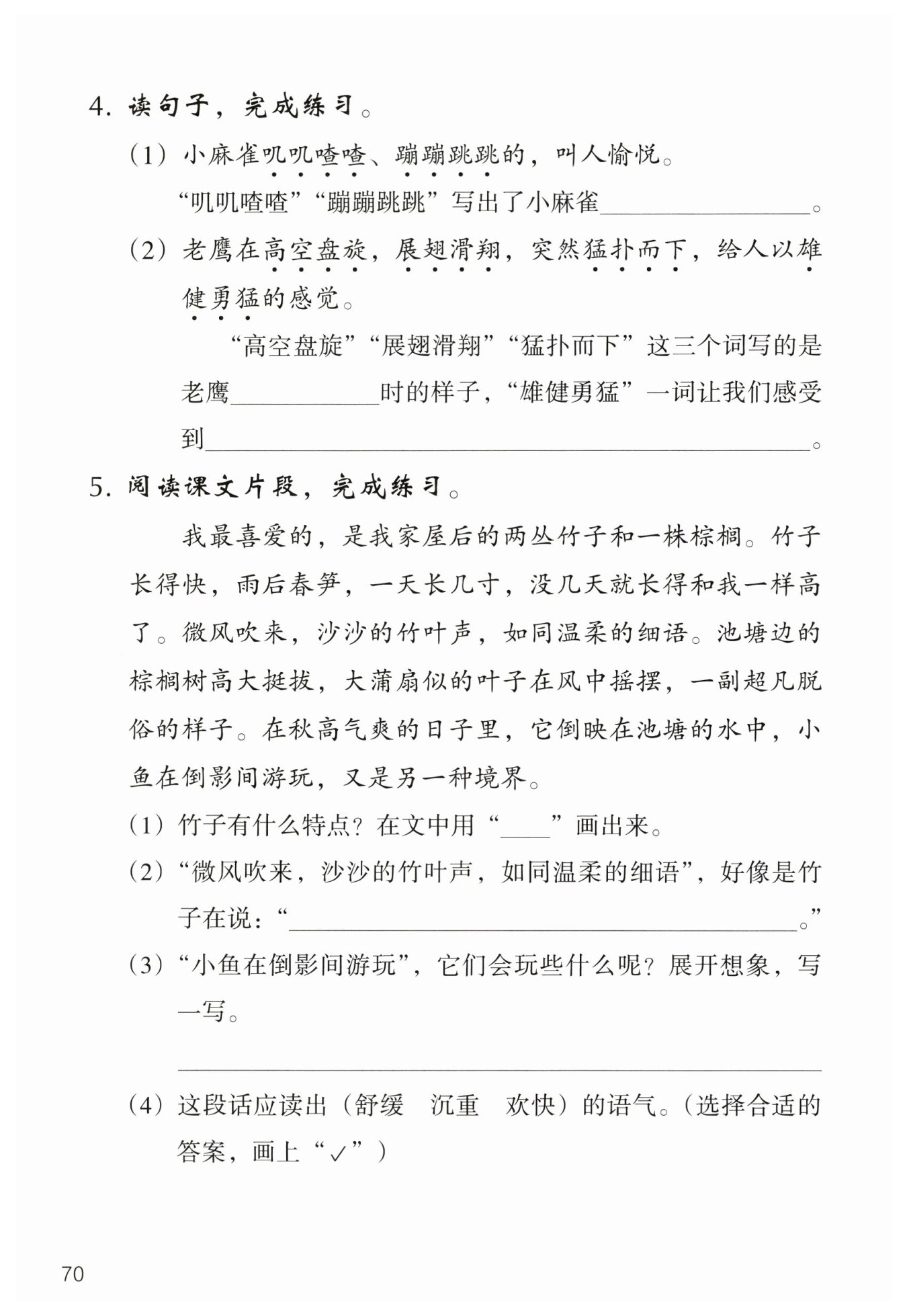 (4)這段話應(yīng)讀出舒緩的語(yǔ)氣。(在“舒緩”后面畫上“√”)