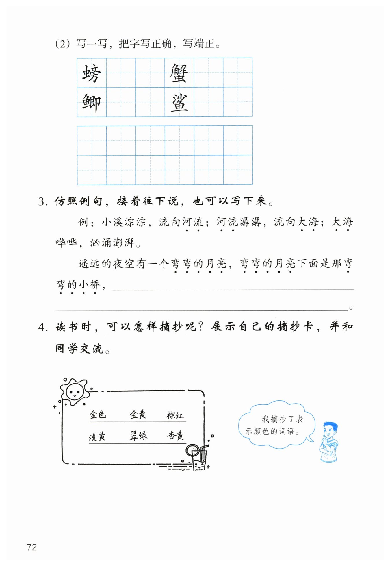 本題考查的是閱讀摘抄能力,需要根據(jù)示例,完成自己的摘抄卡,包括摘抄內(nèi)容及感受等內(nèi)容。需要準(zhǔn)確識(shí)別并摘抄出優(yōu)美的詞語、生動(dòng)的語句等,同時(shí)能夠結(jié)合語句談自己的感受,做到摘抄與感悟相結(jié)合。