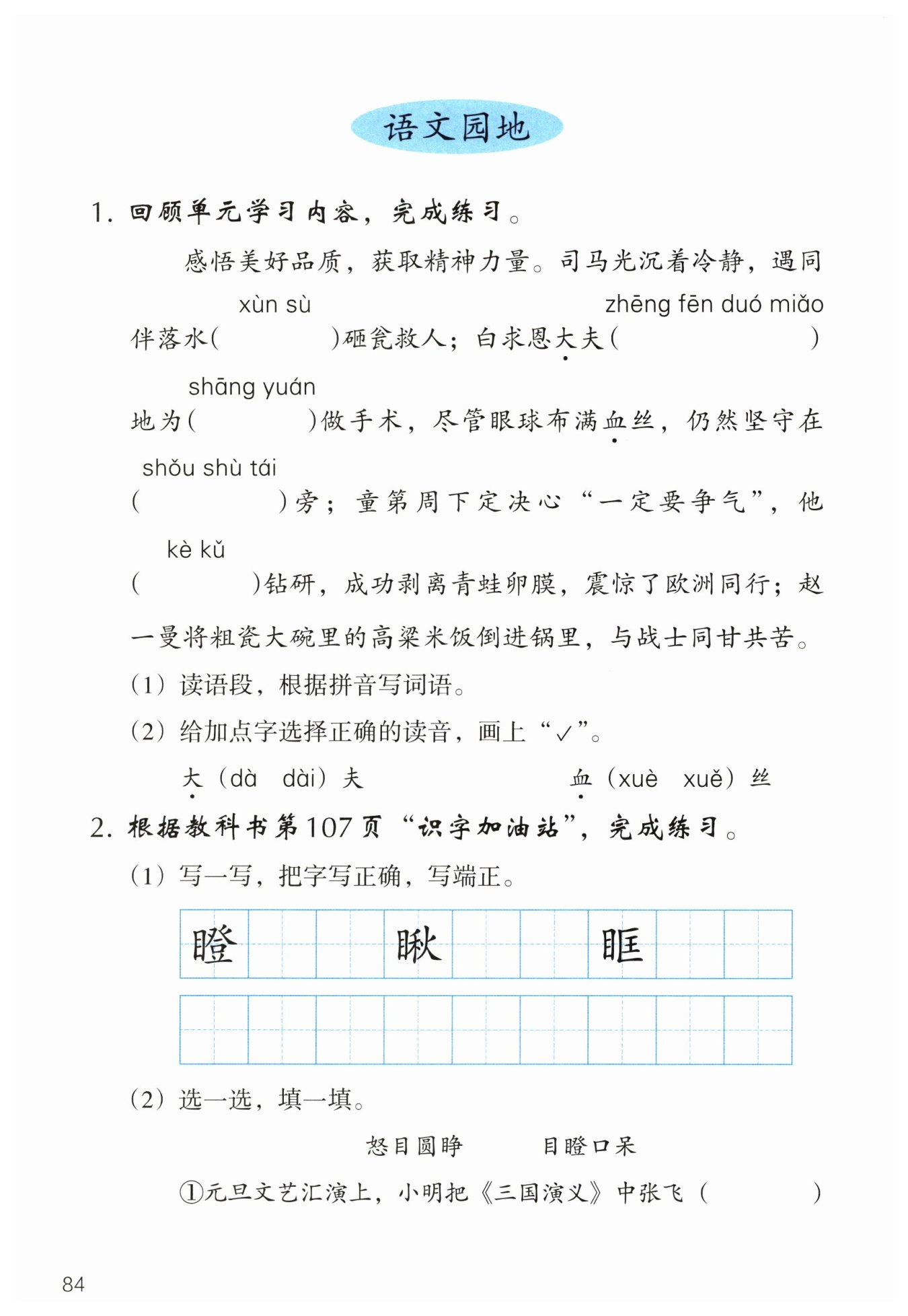(2) 這一題是考查學生選擇正確讀音的能力。需要學生根據(jù)漢字在詞語中的意思,選擇正確的讀音。其中,“大”在表示醫(yī)生的意思時讀dài,“血”在表示血液的意思時讀xuè。