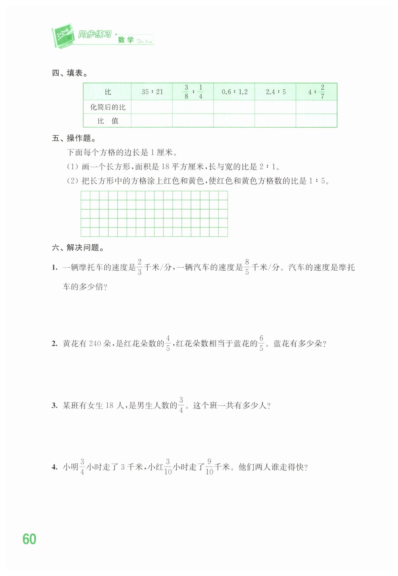 答:?$ $?汽車的速度是摩托車的?$\frac {12}{5}$?倍。