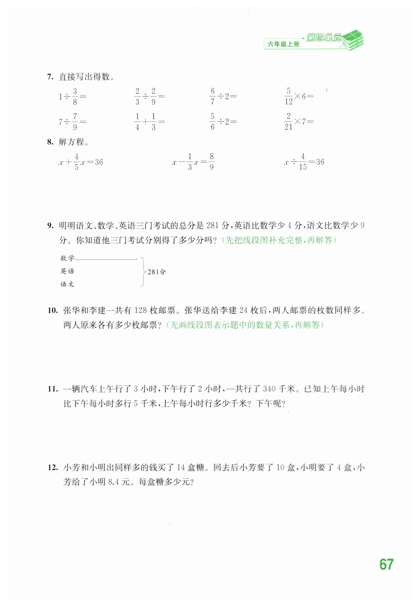 上午:(340+2×5)÷(3+2)=70(千米) 下午:70-5=65 (千米) 答:上午每小時行70千米,下午每小時行65千米。