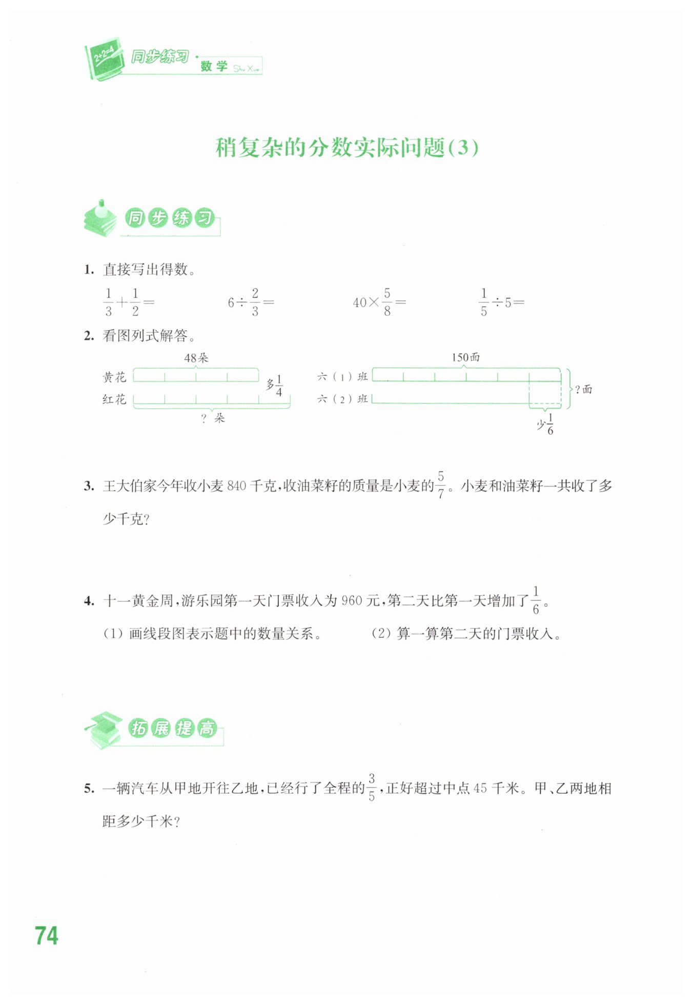 油菜籽的質(zhì)量:$840\times\frac{5}{7}=600$(千克)