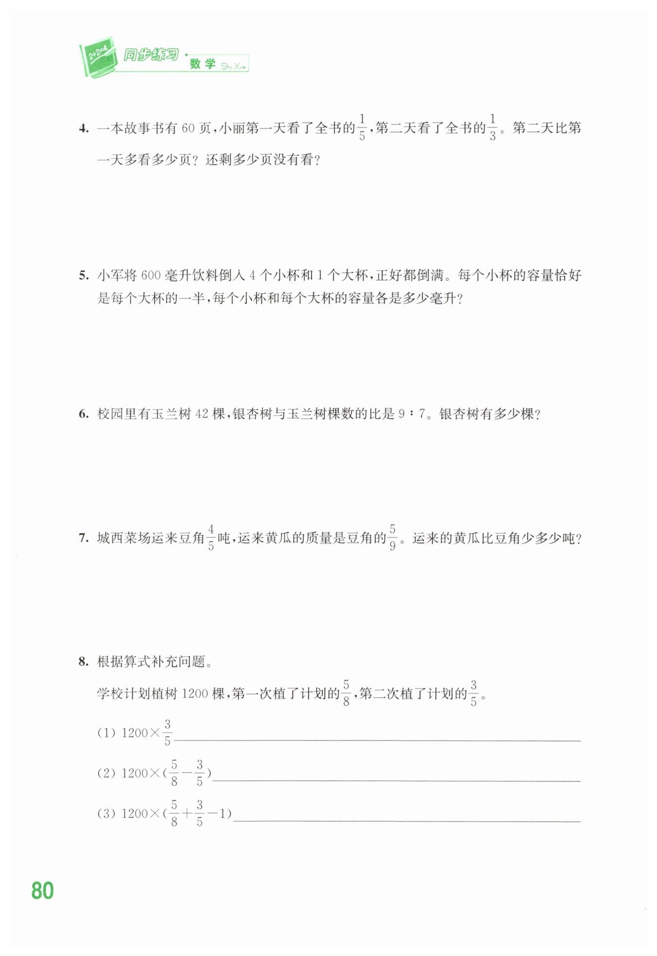 ?$\frac {4}{5} ×(1-\frac {5}{9})=\frac {16}{45}($?噸?$)$?