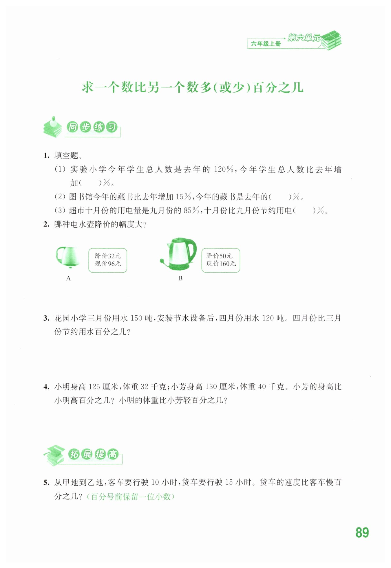 ?A:32÷(32+96)=25%?,?B:50÷(50+160)≈23.8%? ?25%>23.8%? 答?:A?種電水壺降價(jià)的百分比多。