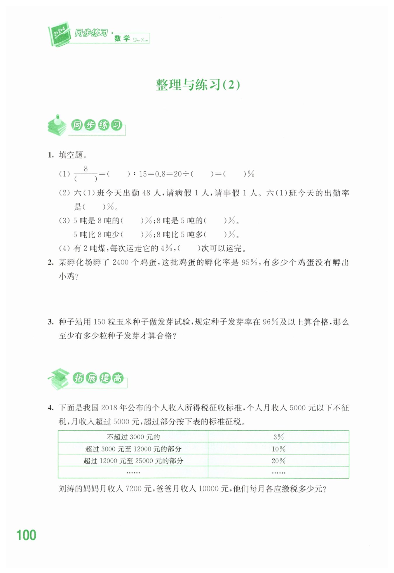 媽媽:?7200?5000=2200(?元?)? ?2200×3%=66(?元?)? 爸爸:?10000?5000=5000(?元?)? ?3000×3%+(5000?3000)×10%=290(?元?)? 答:劉濤的媽媽每月應繳稅?66?元,爸爸應繳稅?290?元。