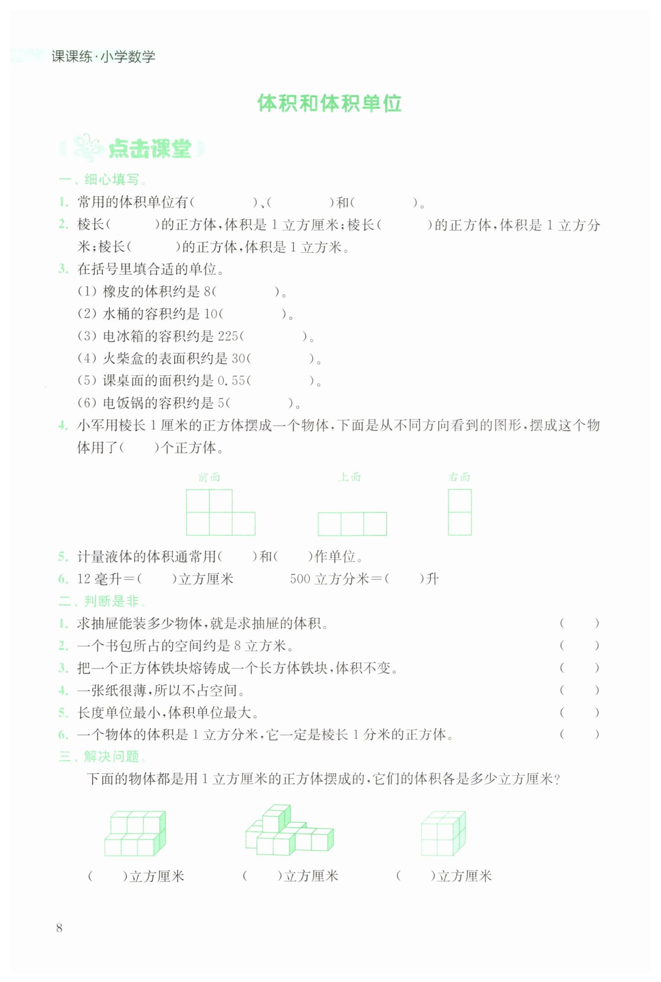 1.求抽屜能裝多少物體,就是求抽屜的容積,而不是體積。容積是指容器內(nèi)部所能容納物體的體積,而體積是指物體所占空間的大小。因此,該說法是錯誤的。