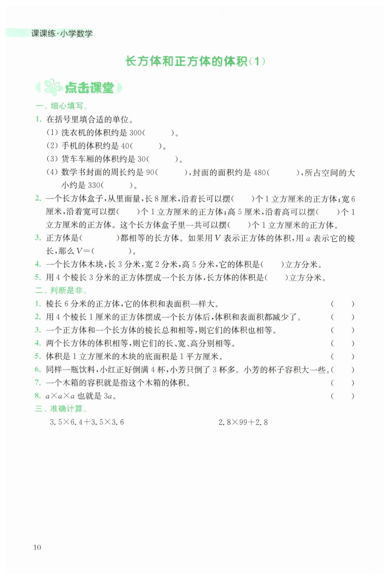 (4) 數學書封面的周長使用厘米(cm)作為單位,因為周長是長度,所以選擇較小的長度單位。封面的面積使用平方厘米(cm2)作為單位,因為面積是二維的。所占空間的大小,即體積,使用立方厘米(cm3)作為單位。