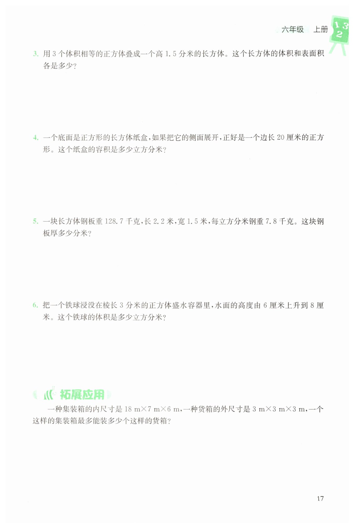 每個正方體的體積為$0.5\times0.5\times0.5,$則長方體的體積為$0.5\times0.5\times0.5\times3$