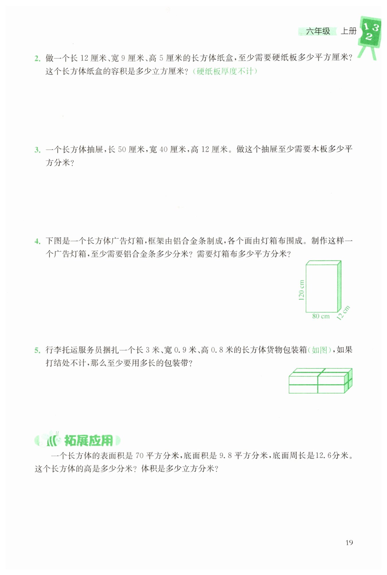 解:鋁合金條的長度即為長方體的棱長總和,燈箱布的面積即為長方體的表面積。