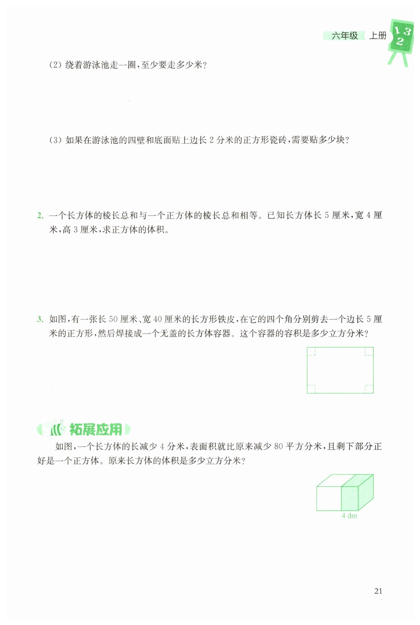 最后進(jìn)行單位換算,因?yàn)?$1$ 立方分米 $= 1000$ 立方厘米,所以 $6000$ 立方厘米 $= 6$ 立方分米。