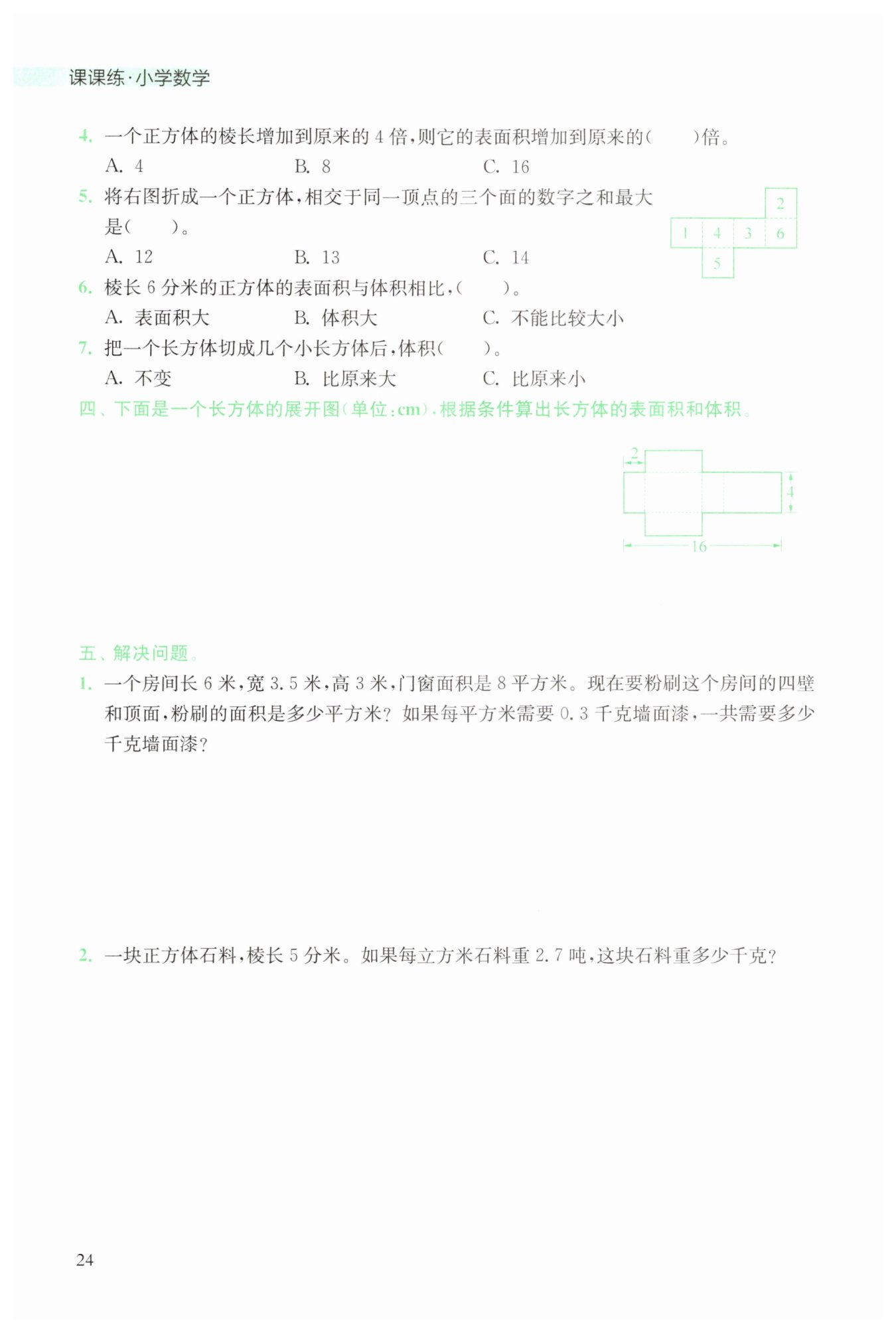 體積:6×4×2= 48(cm3)