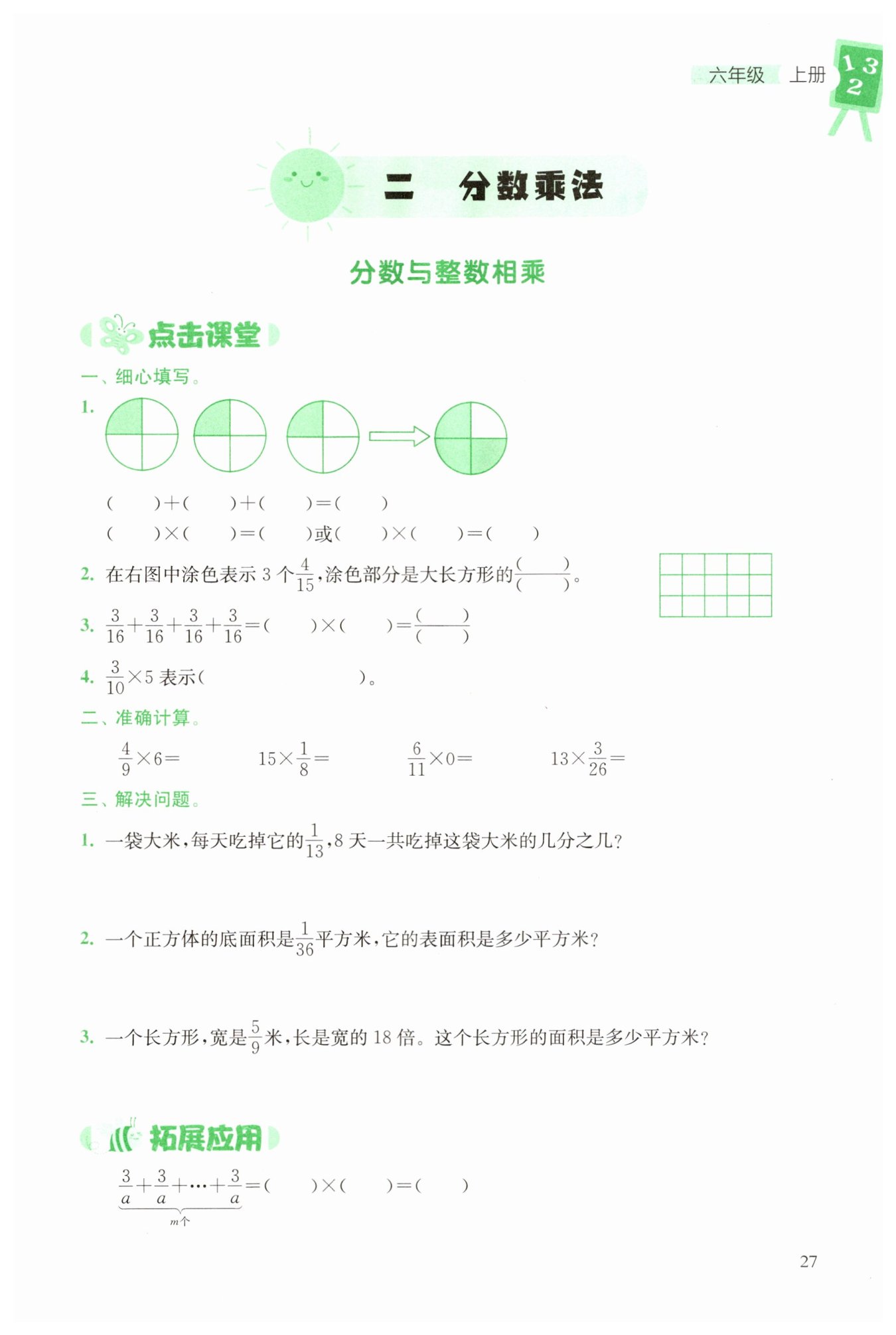 這里是3個(gè)$\frac{1}{4} $相加,所以可以寫(xiě)成$\frac{1}{4}× 3=\frac{3}{4} $,也可以寫(xiě)成$3×\frac{1}{4} =\frac{3}{4} $。