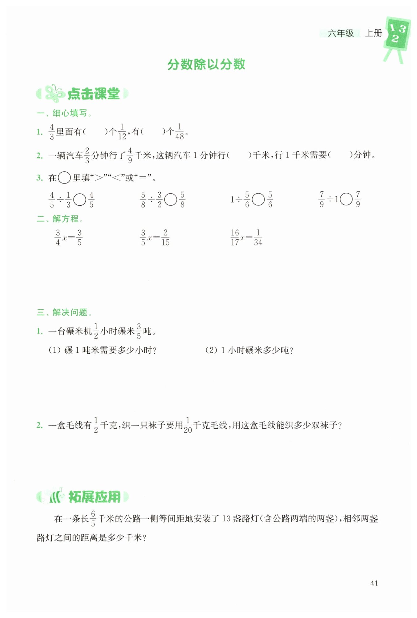$\frac{6}{5} \div 12 = \frac{6}{5} \times \frac{1}{12} = \frac{1}{10} \text{(千米)}$