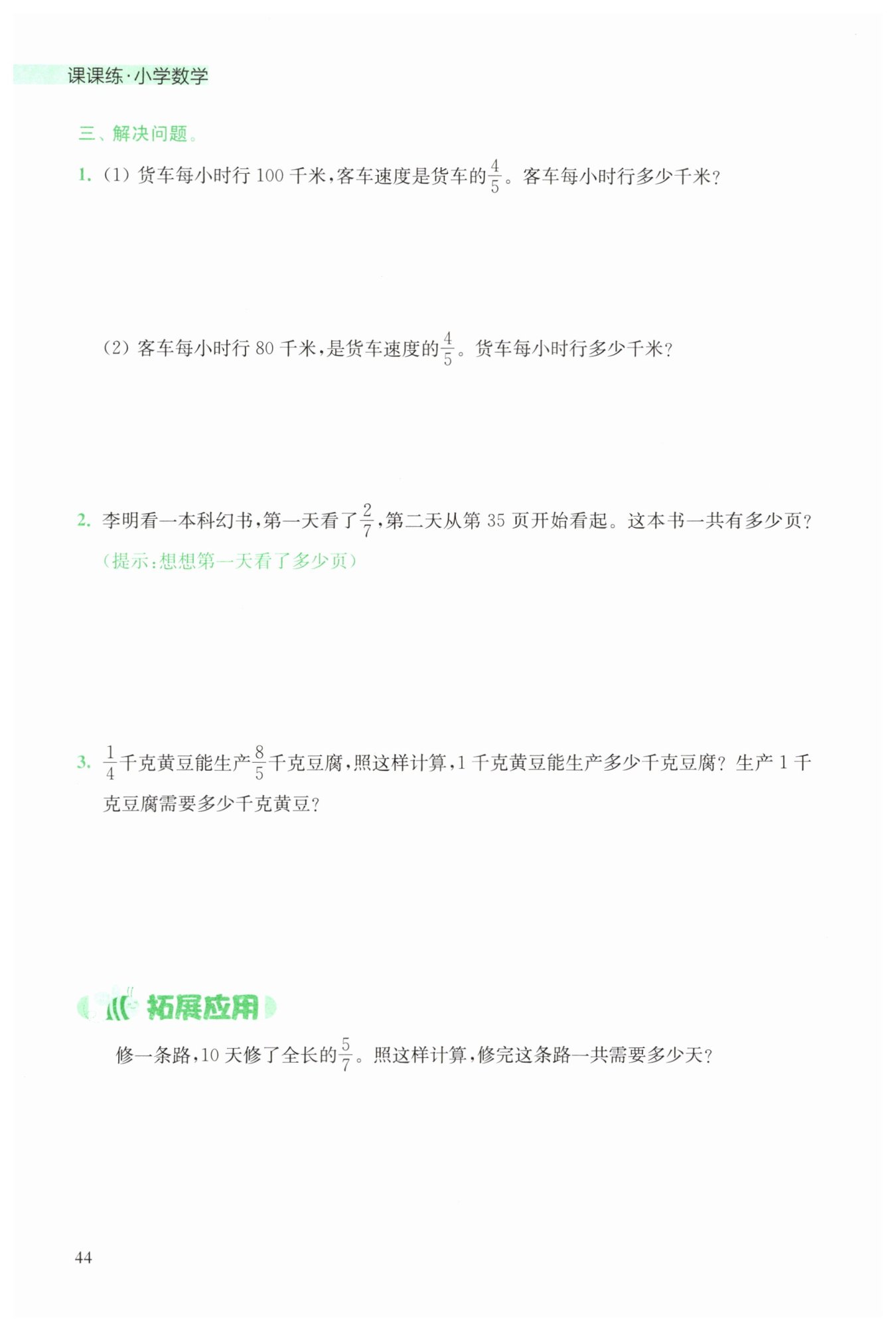 答:1千克黃豆能生產$\frac{32}{5}$千克豆腐,生產1千克豆腐需要$\frac{5}{32}$千克黃豆。