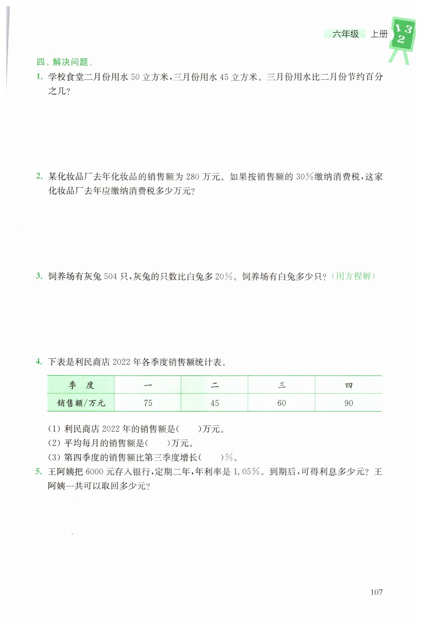 利息:$6000×1.05\%×2 = 6000×0.0105×2 = 63×2 = 126$(元)