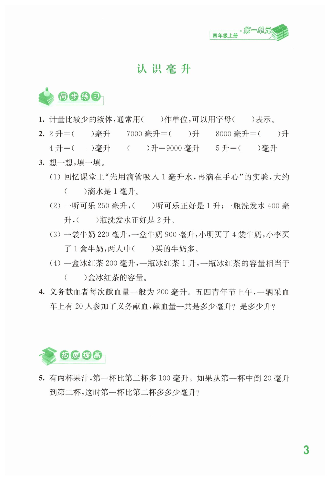 (4) 一瓶冰紅茶容量為1升,即1000毫升,所以相當(dāng)于1000毫升 ÷ 200毫升/盒 = 5盒。