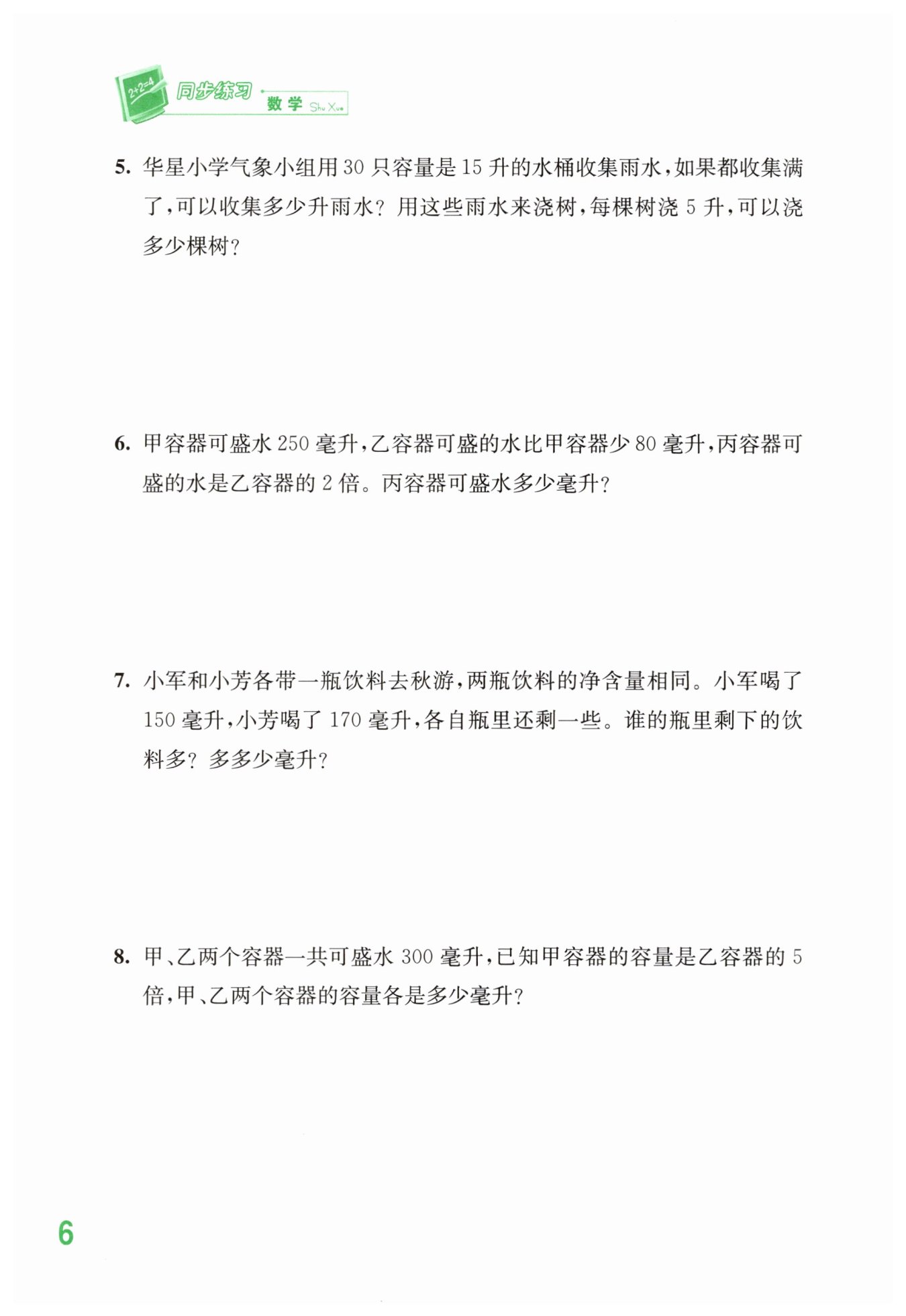 解:設(shè)乙容器的容量為$x$毫升,則甲容器的容量為$5x$毫升。
