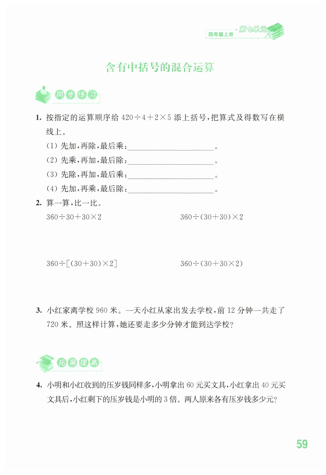 時間=路程÷速度,所以剩余時間為$240\div60 = 4$(分鐘)。