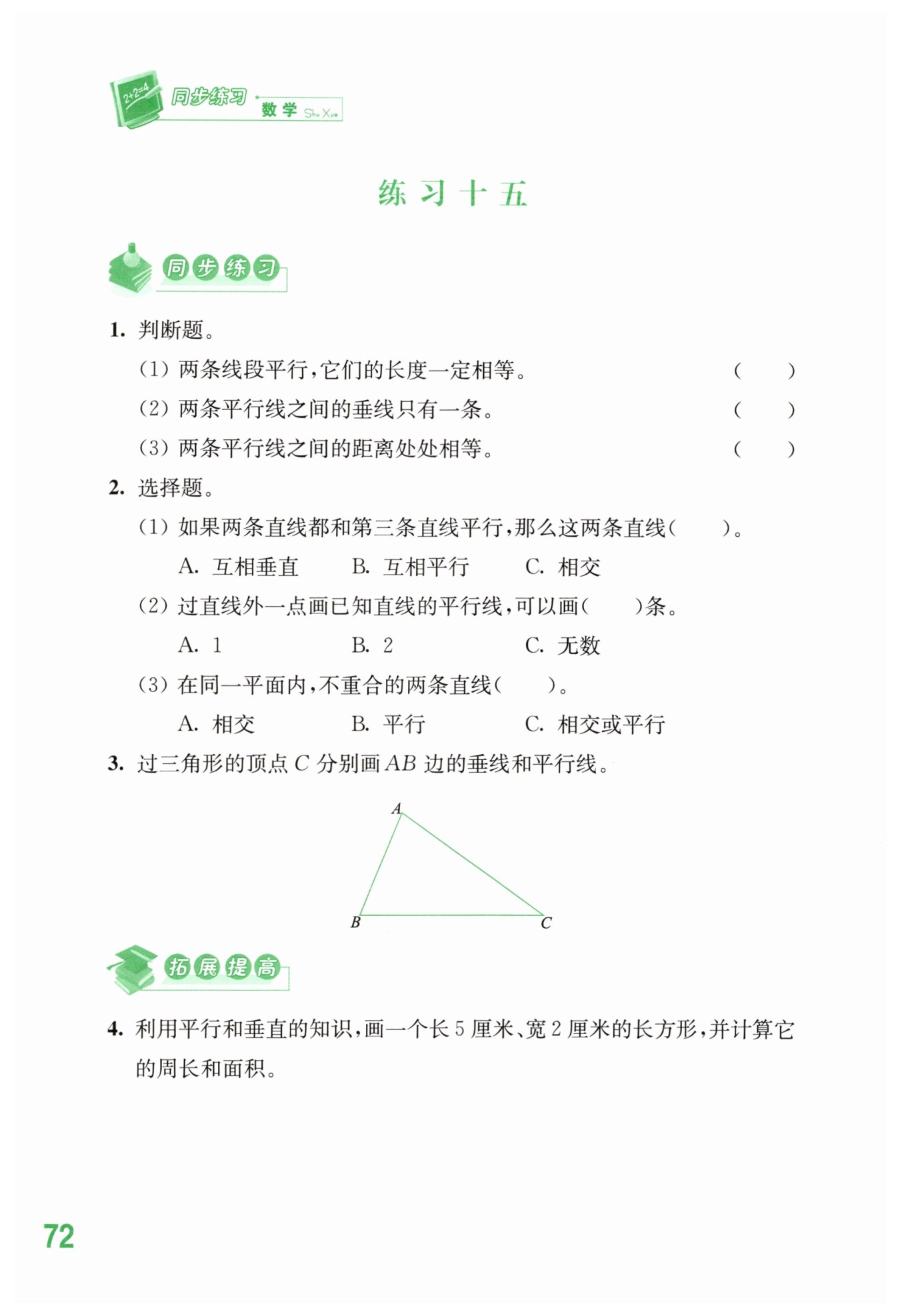 (1) 兩條線段平行,僅僅說明它們?cè)谕黄矫鎯?nèi)且不相交,但并不意味著它們的長(zhǎng)度一定相等。因此,該說法是錯(cuò)誤的。