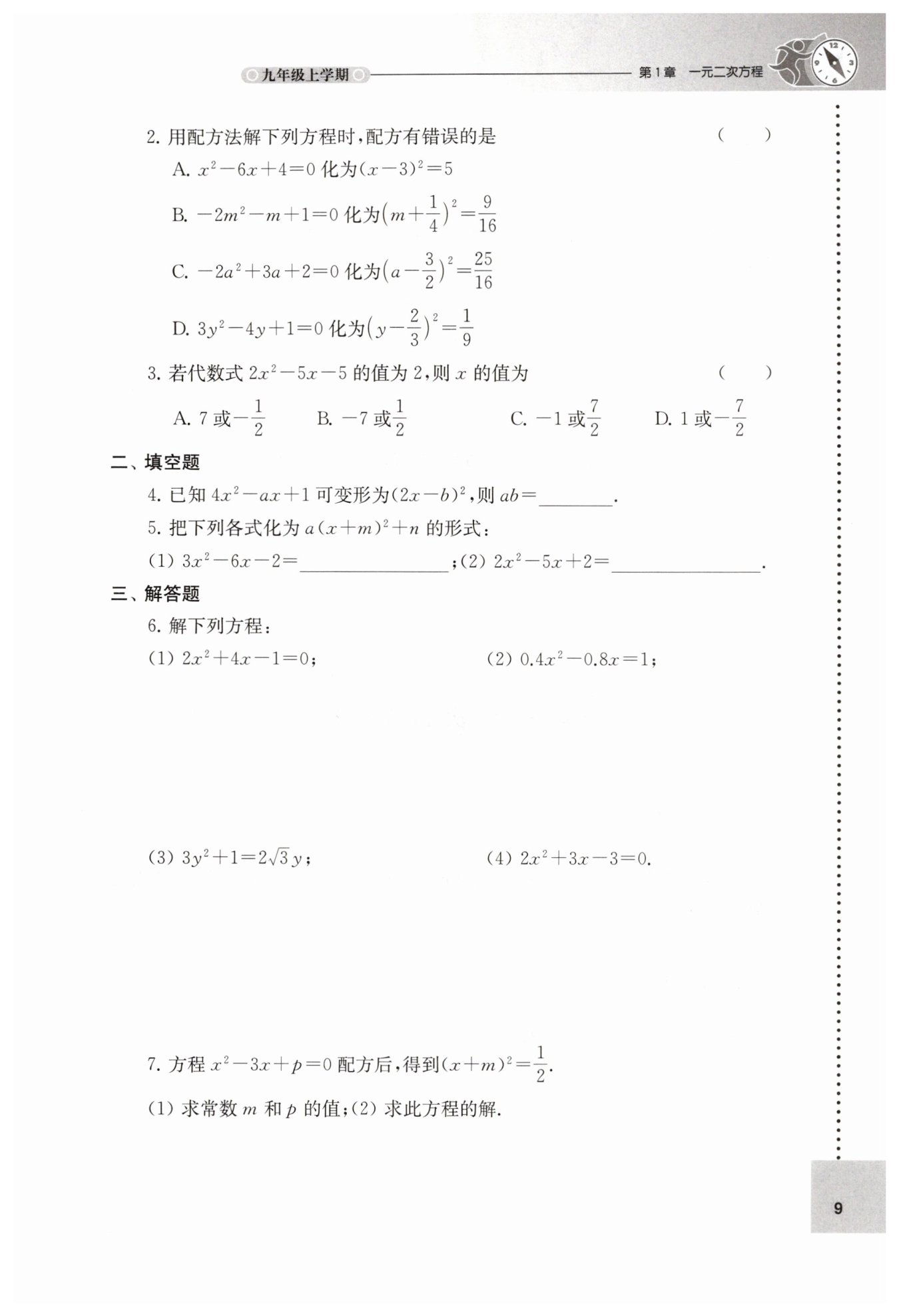 $(a-\frac{3}{4})^{2}=\frac{25}{16}$,原選項(xiàng)配方錯(cuò)誤。