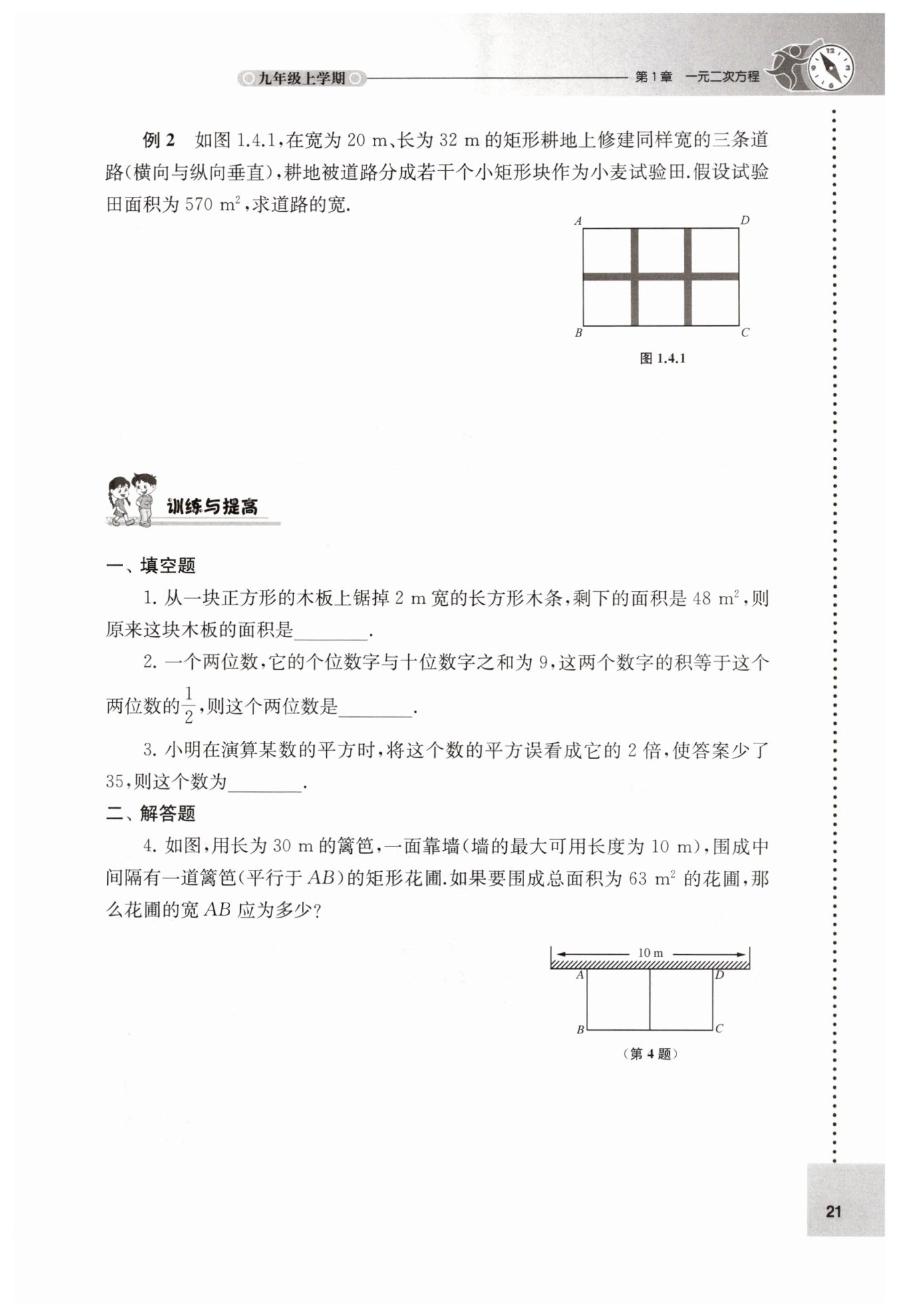 答:道路的寬是1米.
