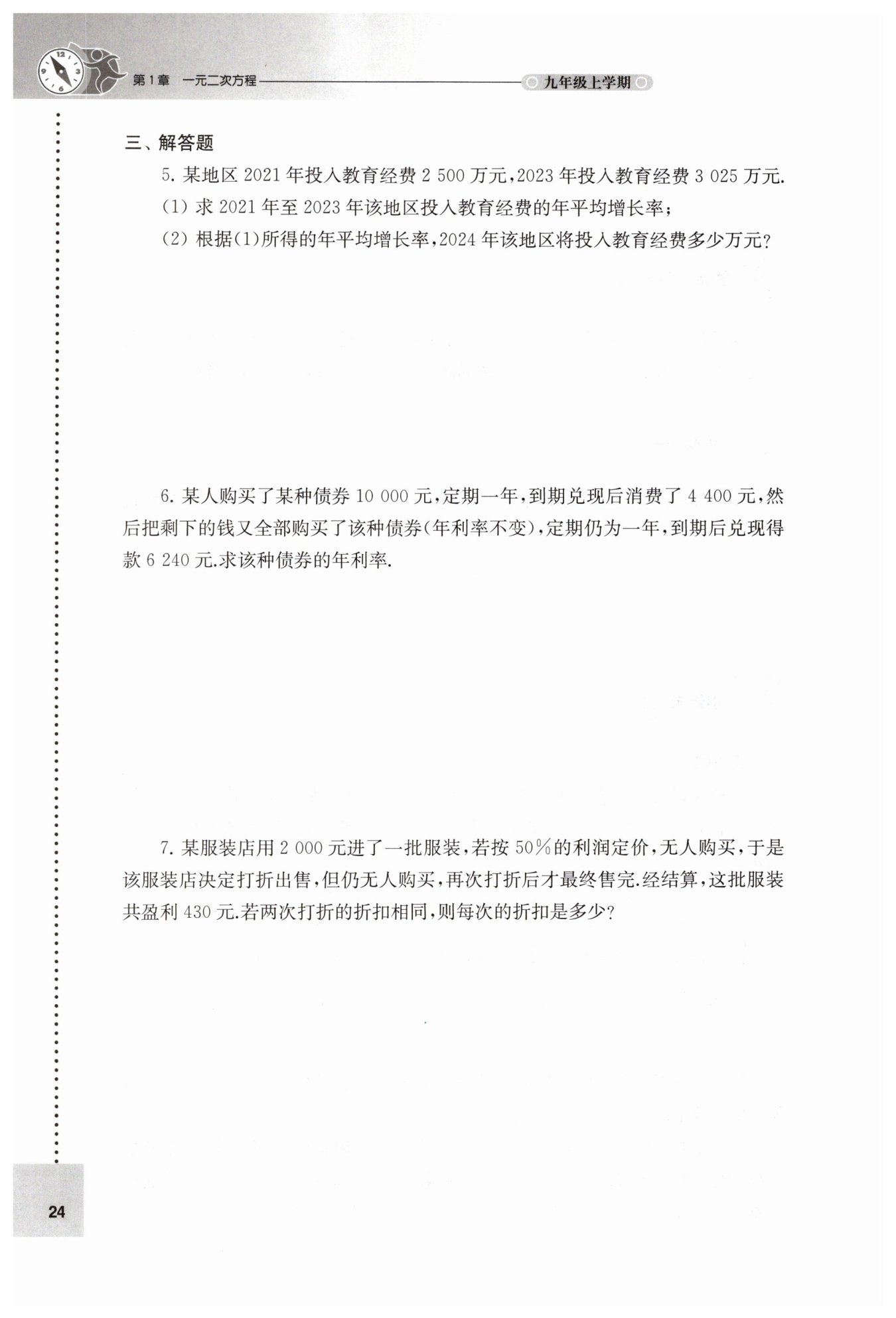 依題意得,[ 10000( 1+x ) -4400 ] ( 1+x ) =6240