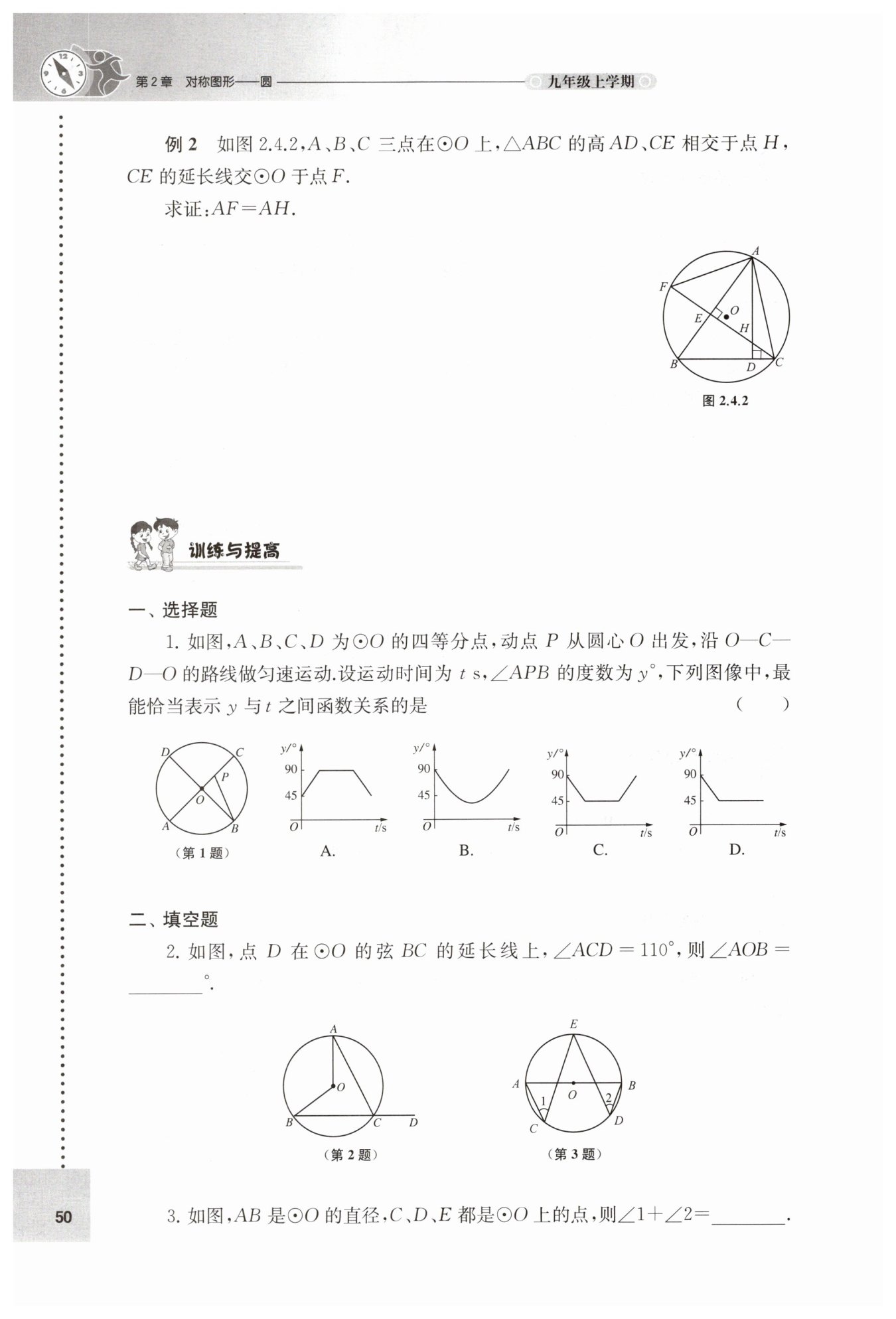連接AD、BC。因?yàn)锳B是⊙O的直徑,所以∠ACB=90°,∠ADB=90°?!?是圓周角,所對(duì)弧為AE;∠2是圓周角,所對(duì)弧為BE?!?+∠2所對(duì)弧為AE+BE=AB。因?yàn)锳B是直徑,所對(duì)圓心角為180°,所以∠1+∠2=1/2×180°=90°。