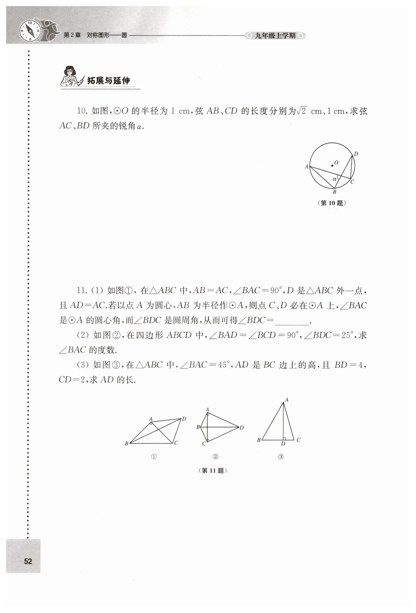 綜上,(1)$45^{\circ}$;(2)$25^{\circ}$;(3)$AD = 3+\sqrt{17}$。