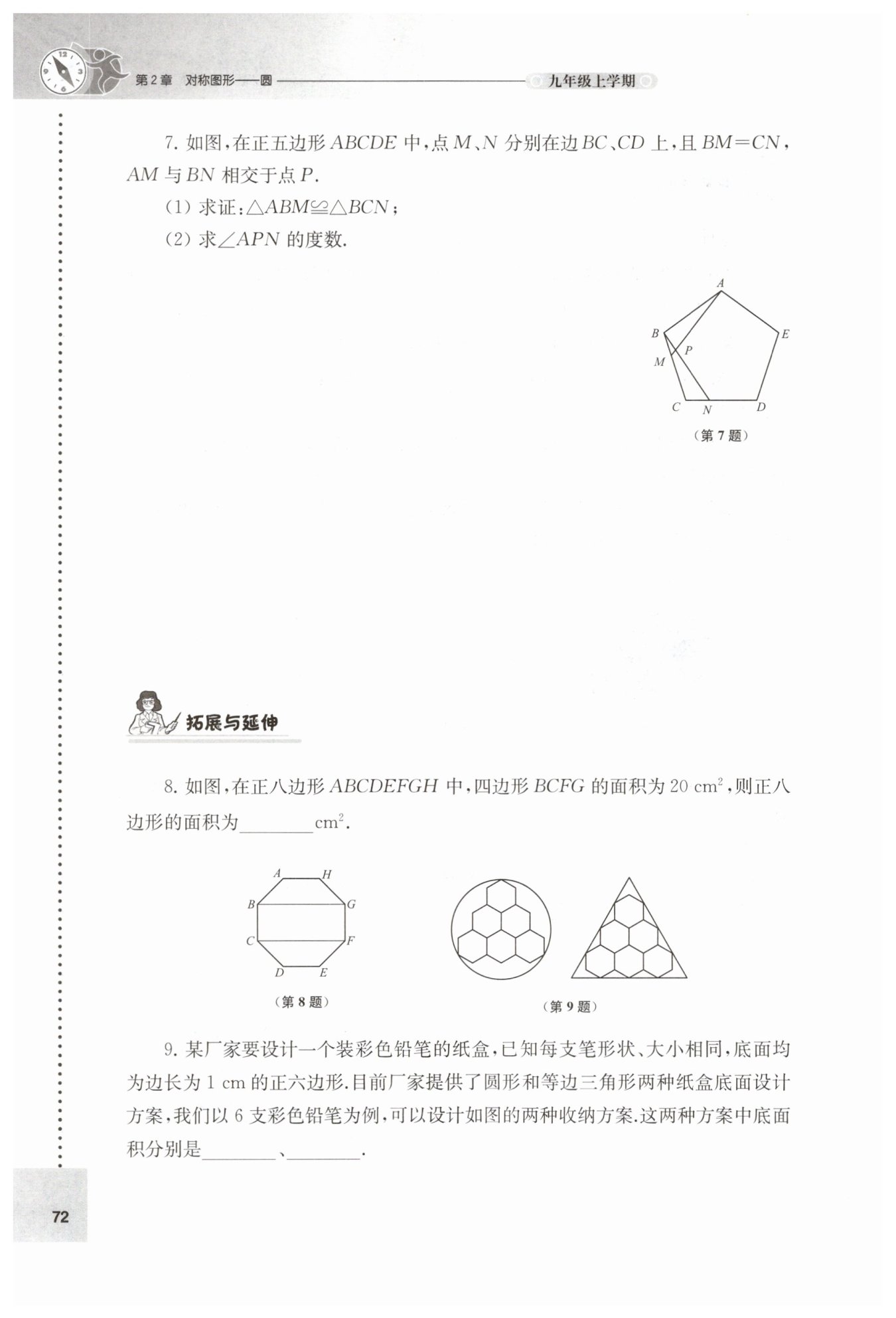 ?所以$\angle MBA=\angle APN=\dfrac{(5-2)× 180}{5}={108}^{\circ }.?$
