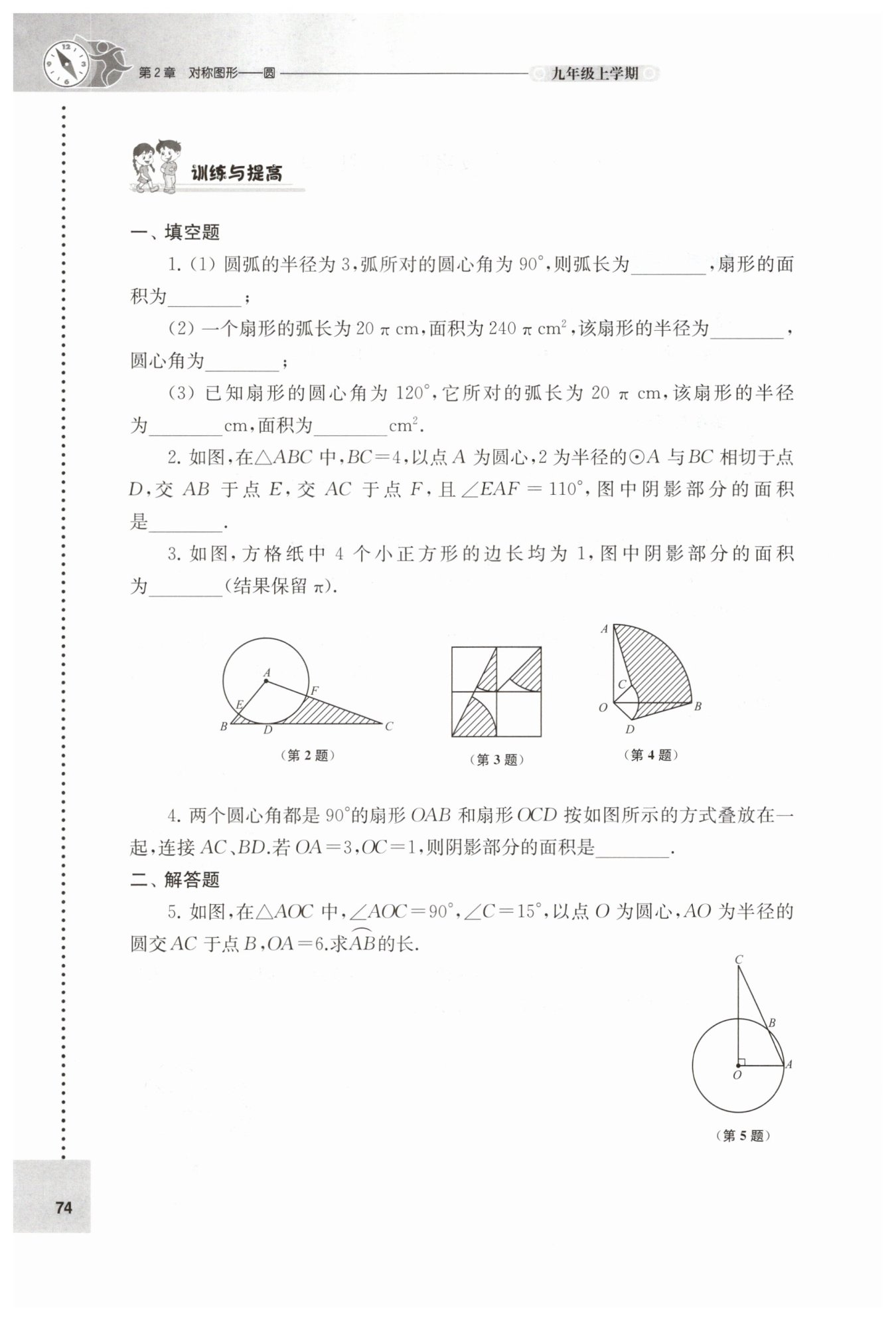 陰影部分面積:$\frac{9}{4}\pi - \frac{1}{4}\pi = 2\pi$