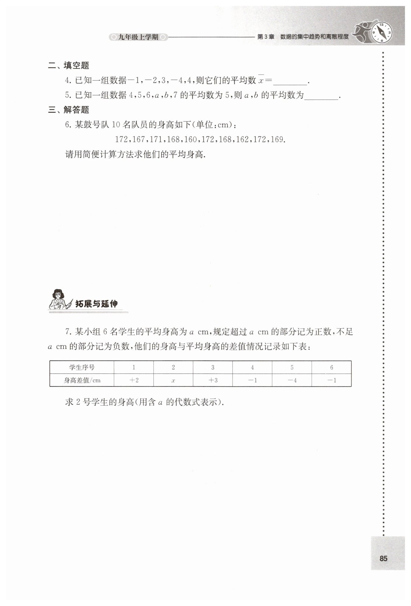 取基準(zhǔn)數(shù)168cm,計(jì)算各身高與基準(zhǔn)數(shù)的差值:4,-1,3,0,-8,4,0,-6,4,1。