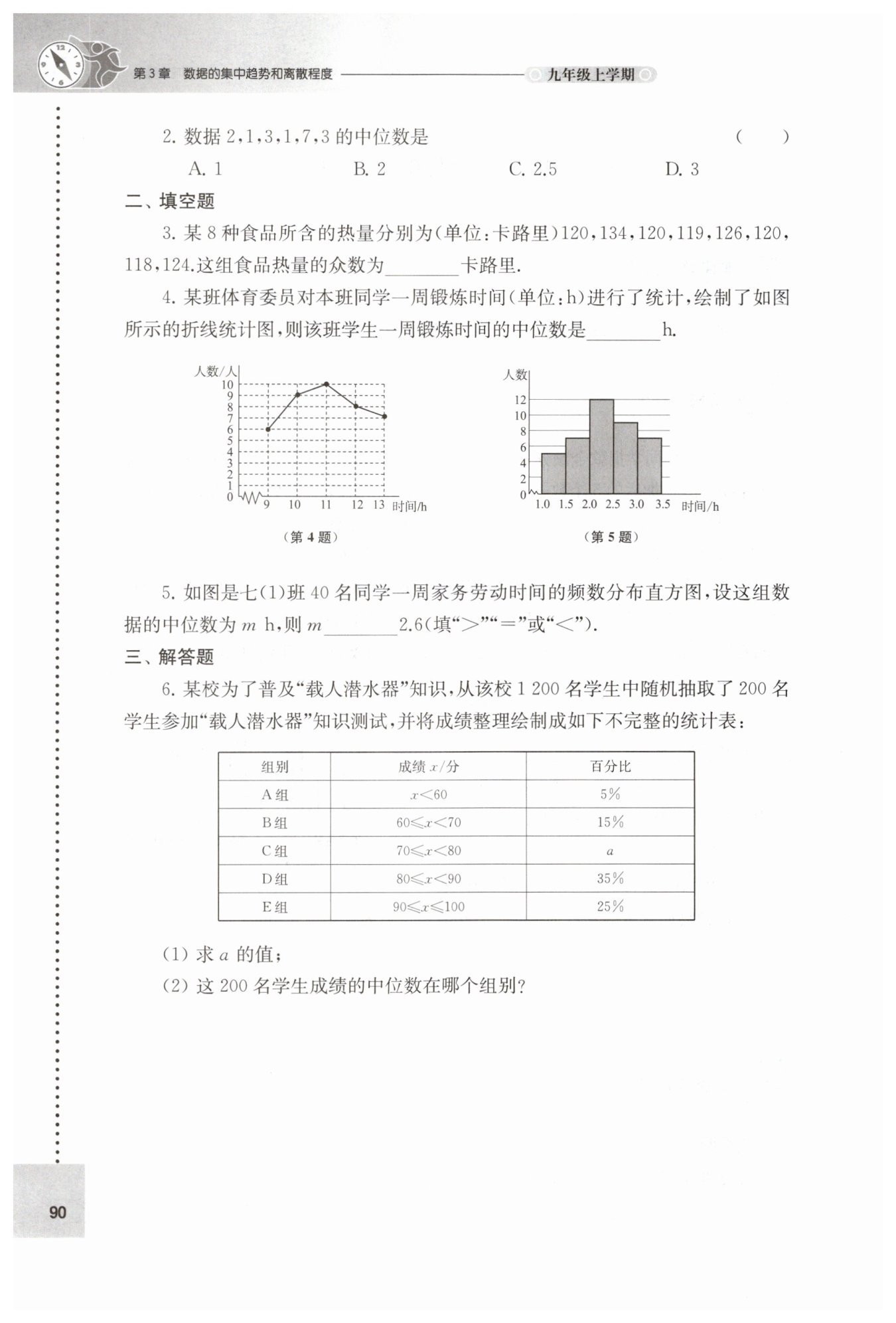 中位數(shù)為$\frac{2+3}{2}=2.5$