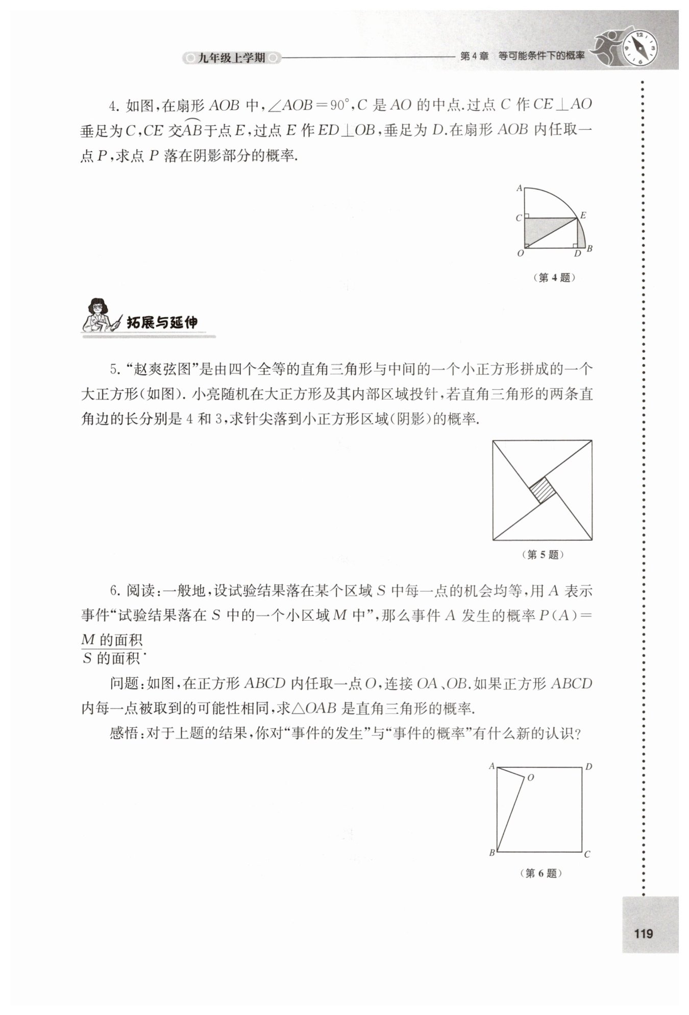 $\text{概率} = \frac{S_{\text{陰影}}}{S_{\text{扇形}AOB}} = \frac{\frac{\pi r^2}{3}}{\pi r^2} = \frac{1}{3}$