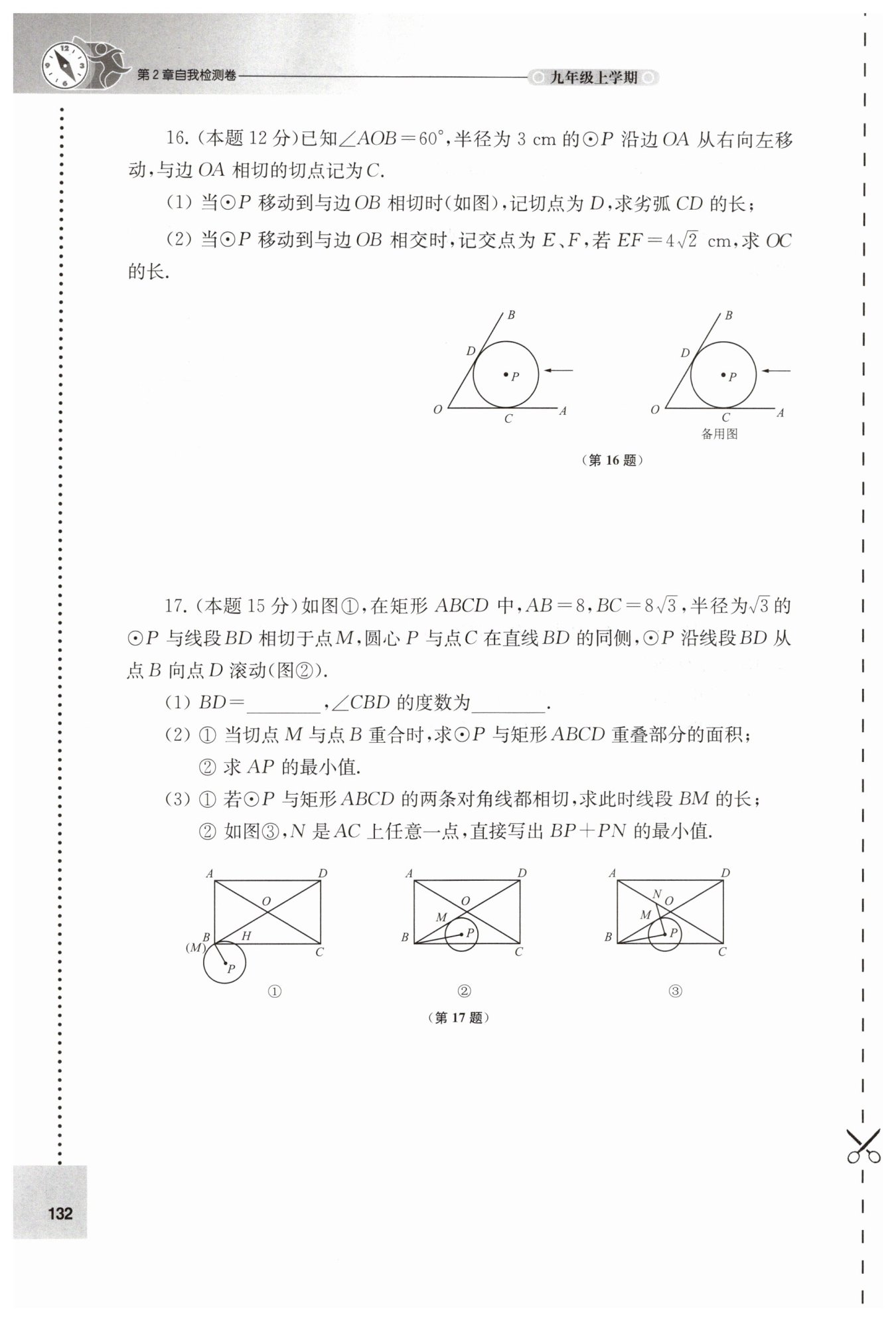 答案:(1)$2\pi\,\text{cm};$(2)$\frac{5\sqrt{3}}{3}\,\text{cm}$或$\frac{\sqrt{3}}{3}\,\text{cm}。$
