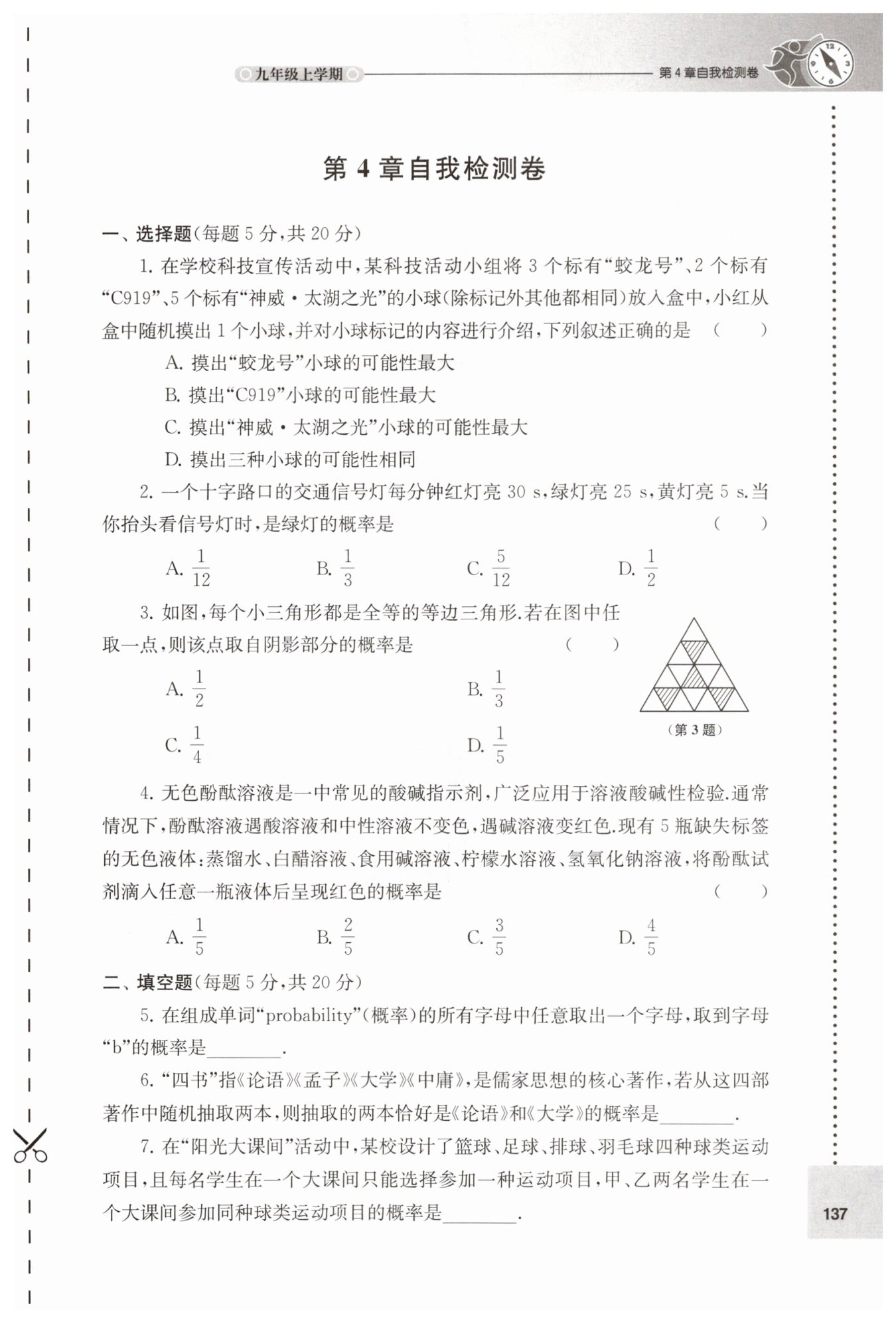 其中參加同種球類運動項目的情況有:(籃球,籃球)、(足球,足球)、(排球,排球)、(羽毛球,羽毛球),共4種。