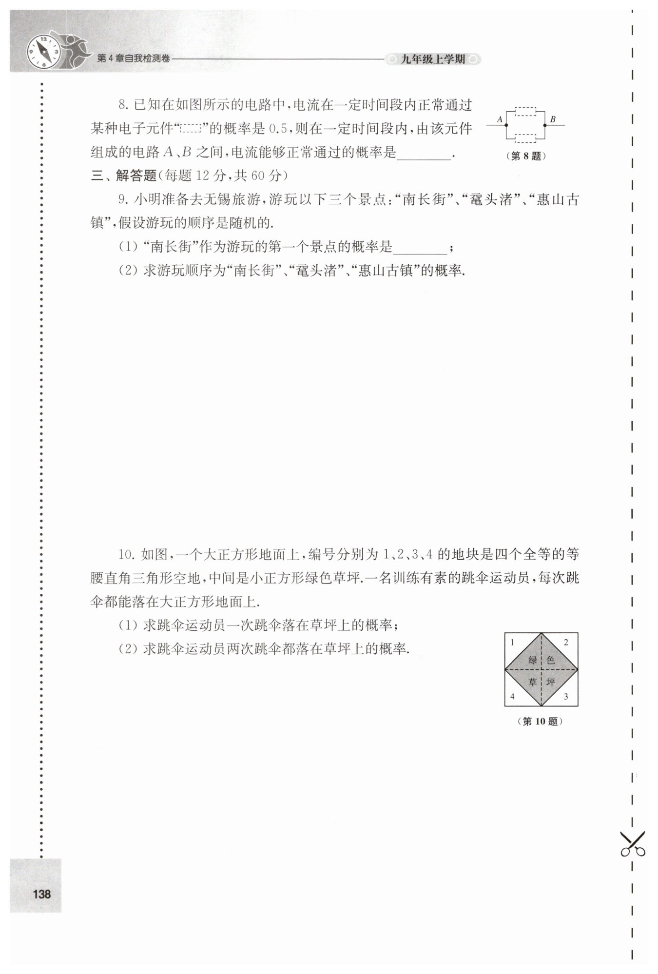 (2)一共有8×8=64種等可能的結果,其中兩次落在草坪上有4×4=16種結果