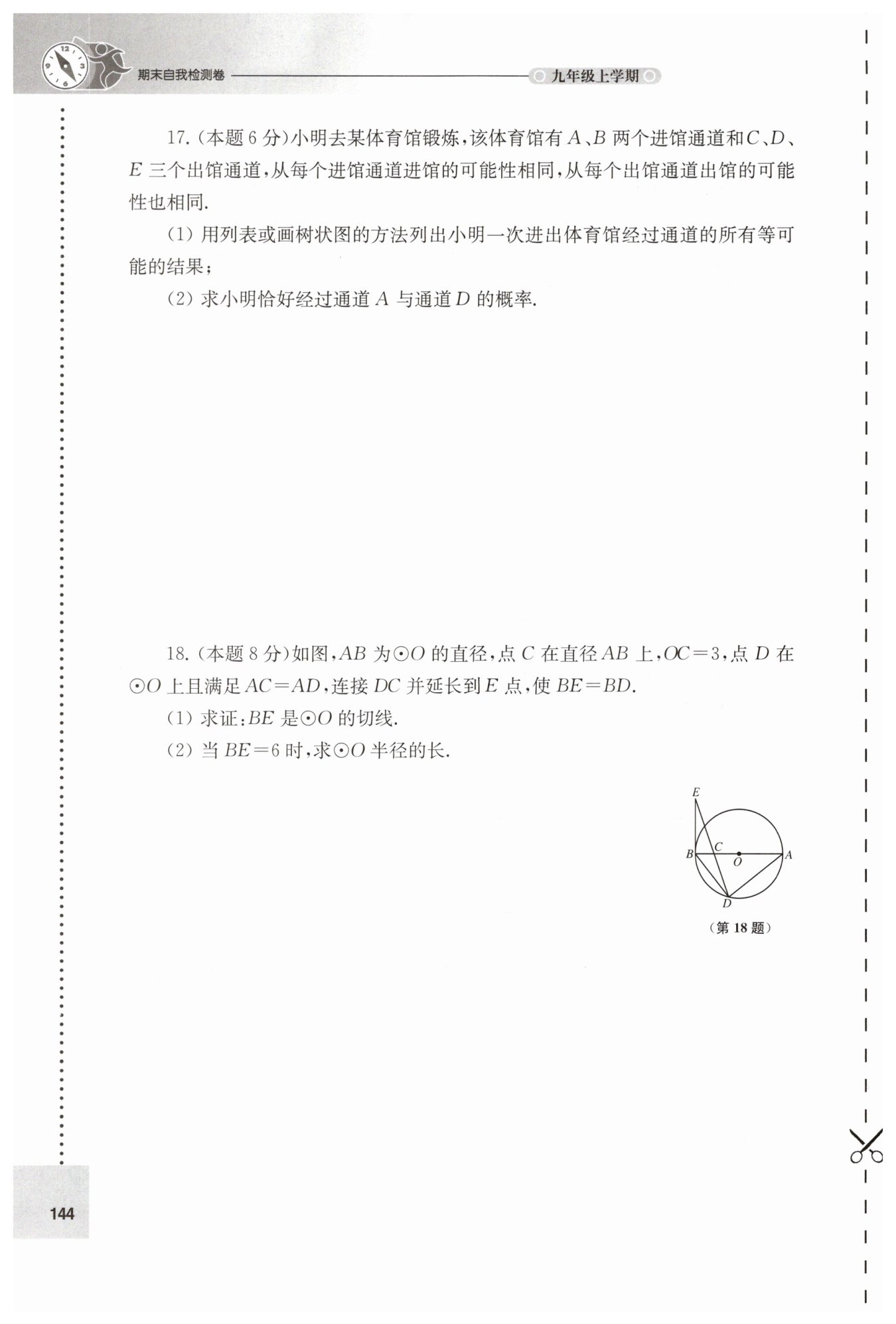 因為 $OB$ 是 $\odot O$ 的半徑,且 $OB \perp BE,$所以 $BE$ 是 $\odot O$ 的切線。