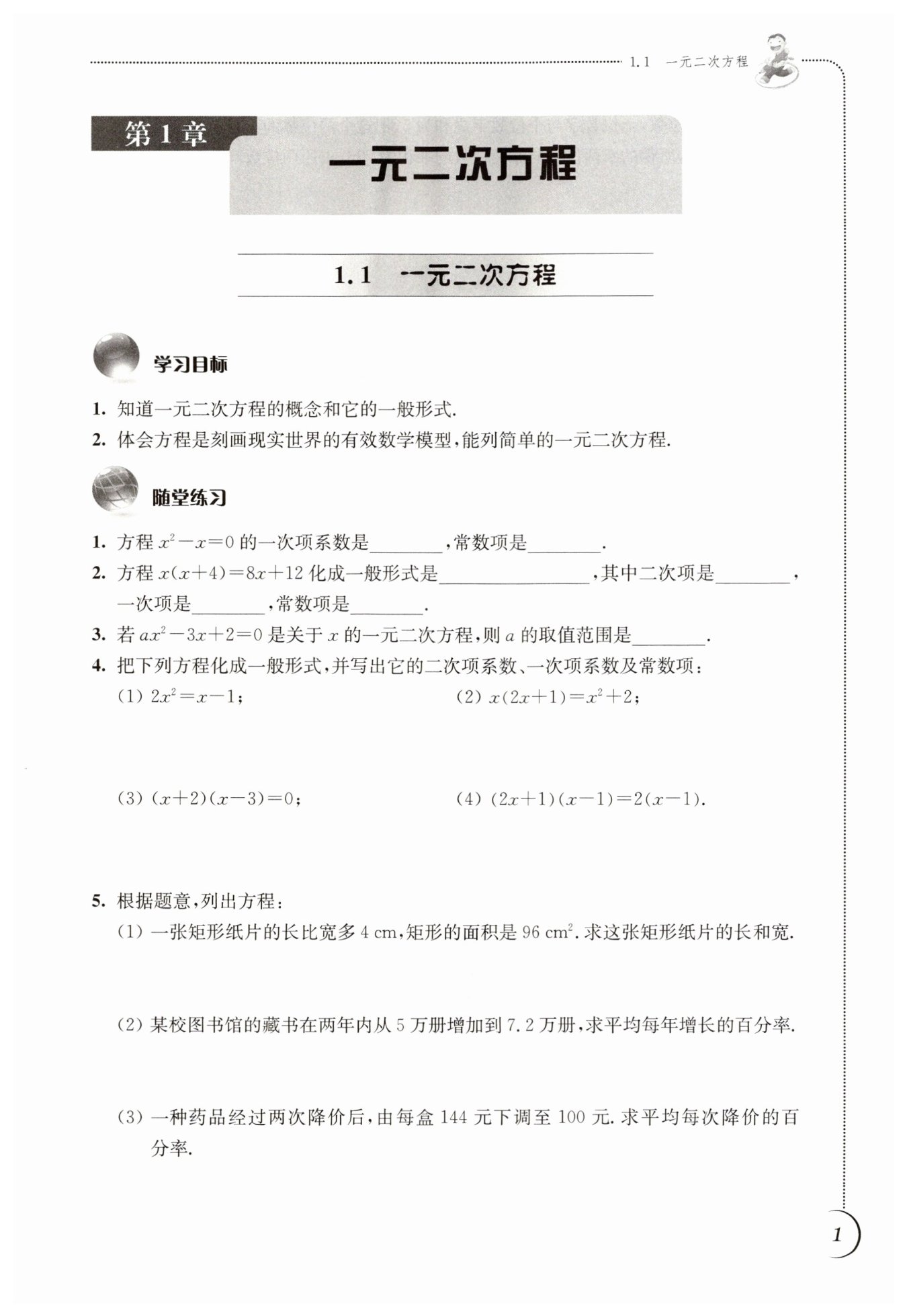 解:$2x^2 = x - 1,$移項得$2x^2 - x + 1 = 0,$二次項系數為2,一次項系數為-1,常數項為1。