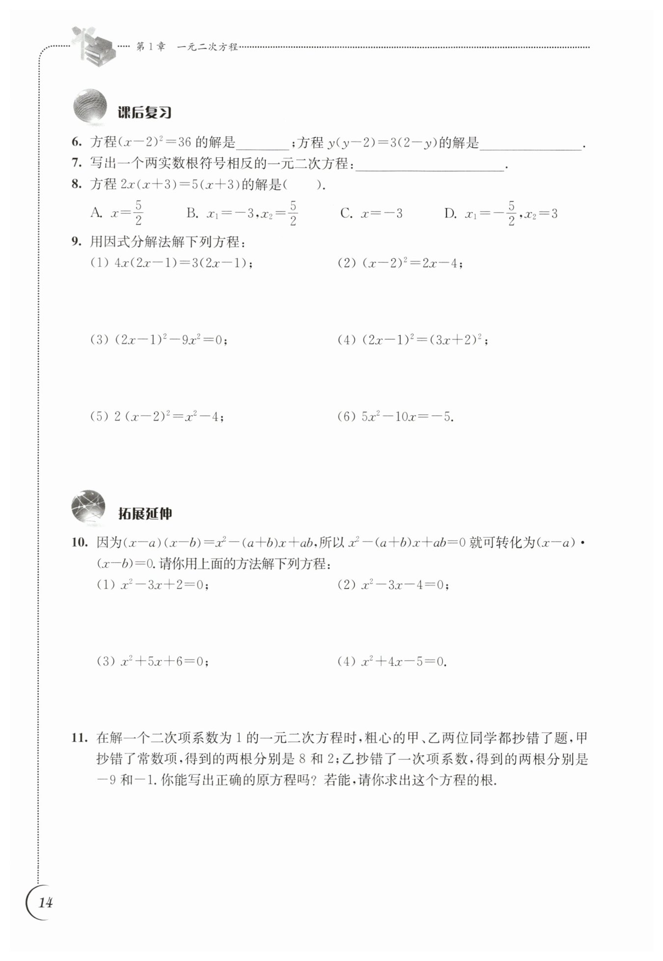 解方程$x^2 - 10x + 9 = 0,$因式分解得$(x - 1)(x - 9) = 0,$解得$x_1 = 1,$$x_2 = 9。$